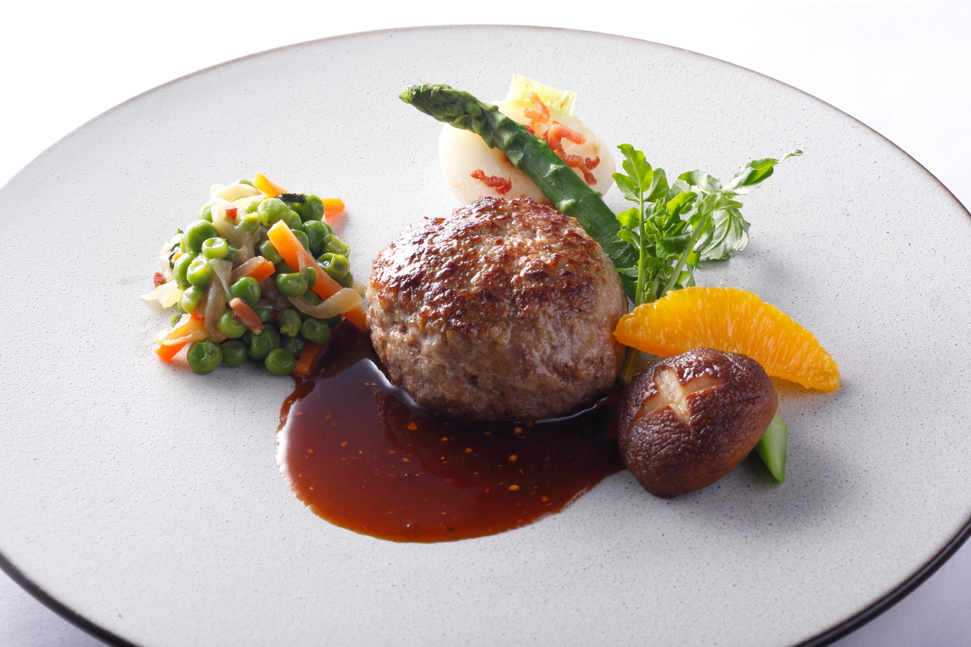 岐阜県産の飛騨牛とたまねぎのみを使用し贅沢に仕上げたハンバーグステーキです。お肉そのものの旨味を存分にご堪能いただけます。資生堂パーラー伝統のデミグラスソースに、香り高いポート酒をきかせた特製ソースとともにお楽しみください。