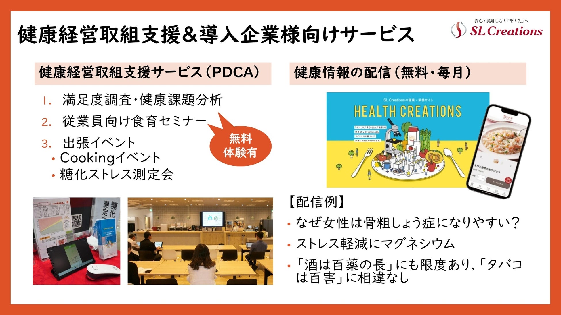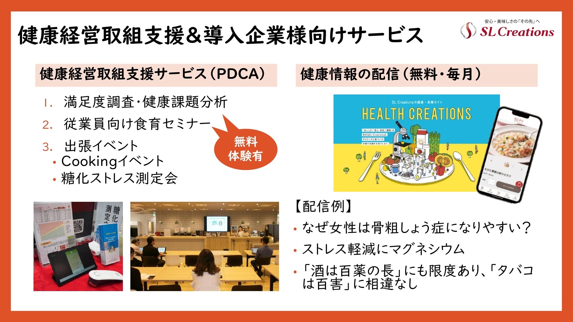 株式会社SL Creations(本社:東京都大田区羽田、代表取締役社長:佐藤健)は、自社の社食サービス『Office Premium Frozen(オフィスプレミアムフローズン)』を活用した職場での研究において、糖化ストレス指標(SAF)の低下を確認しました。本成果は英文査読論文として掲載されています。