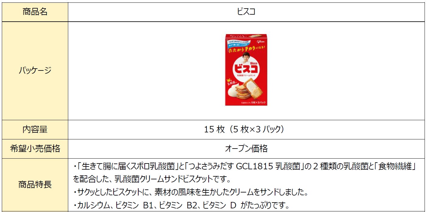 「ビスコ」は、まだまだ栄養が少なかった時代に、子どもたちの健康を願い、ビスケットに酵母入りクリームをサンドし誕生しました。その後、時代に合わせてカルシウムやビタミンDなどの栄養素が入ったり、「生きて腸に届くスポロ乳酸菌」が加わったりと、90年以上の間、子どものすこやかな成長を思い続けてきました。そして2025年、新たに「つよさうみだすGCL1815乳酸菌」が加わり、「ビスコ」は2つの乳酸菌入りに。