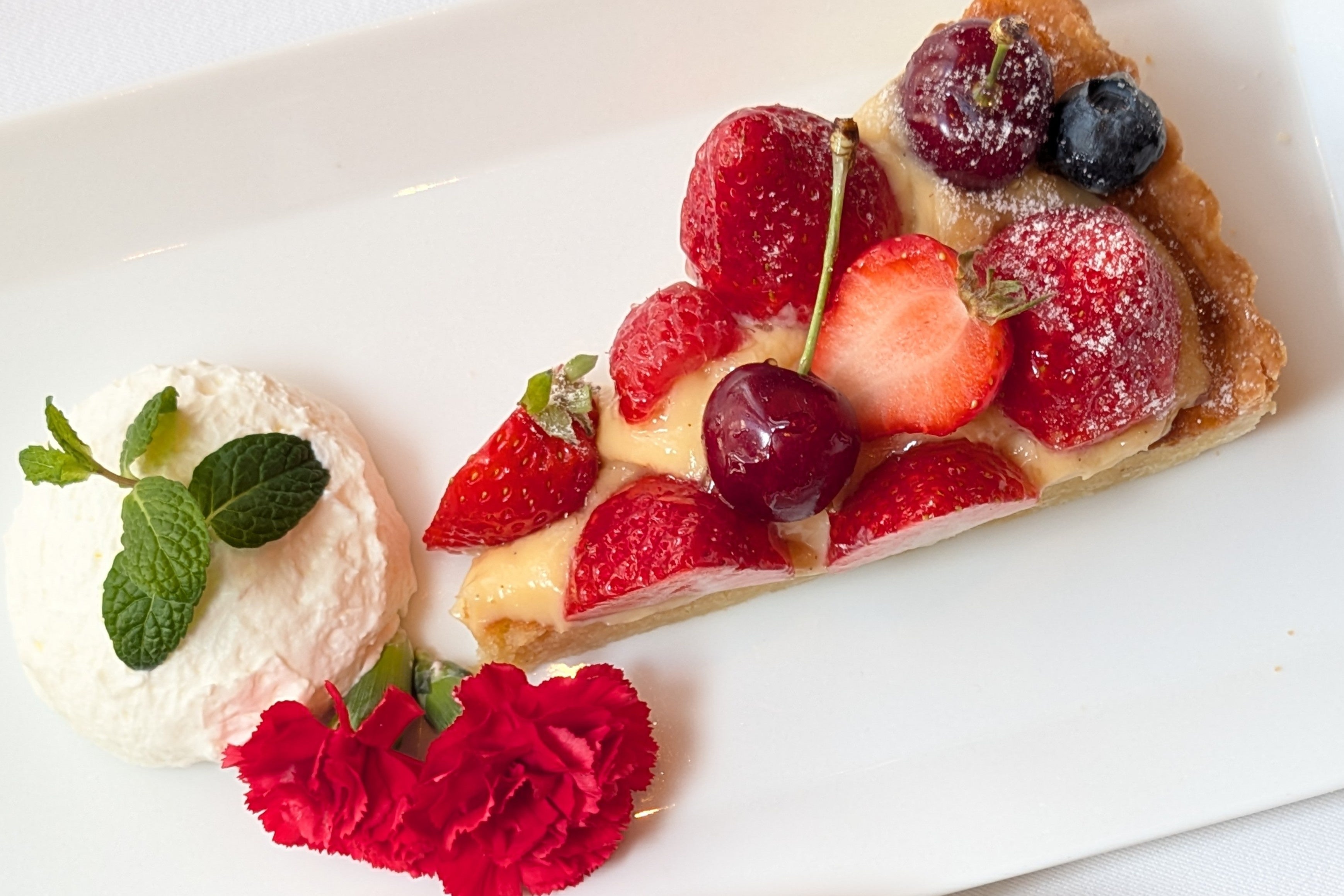 カスタードクリームを敷き詰めたタルトに、彩り豊かなフルーツを贅沢にあしらった華やかな一皿。濃厚なカスタードの甘みと爽やかな酸味、瑞々しい食感が重なり合い、豊かな味わいを生み出します。仕上げにはカーネーションを添え、日頃より家族を支えるお母様への感謝の想いを表現。京都店らしい“落ち着きと華やかさ”を兼ね備えた、記憶に残る母の日限定デザートです。