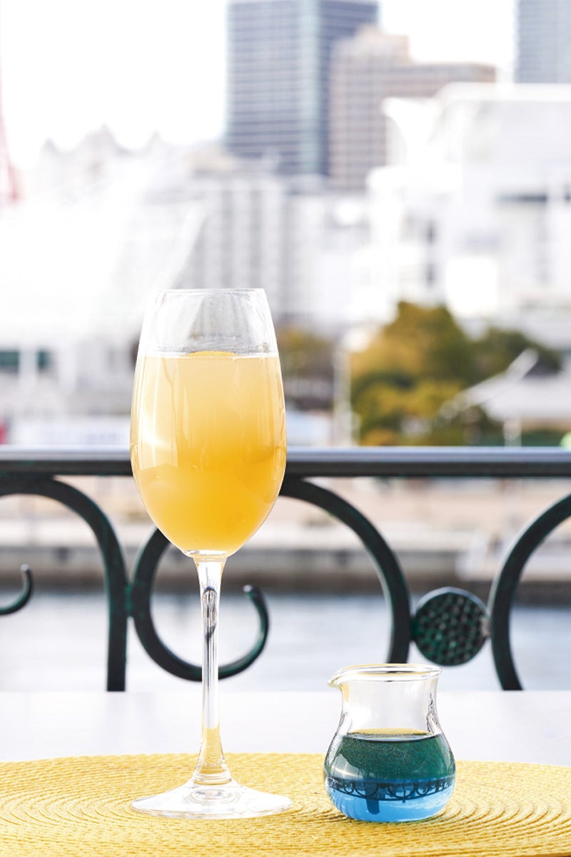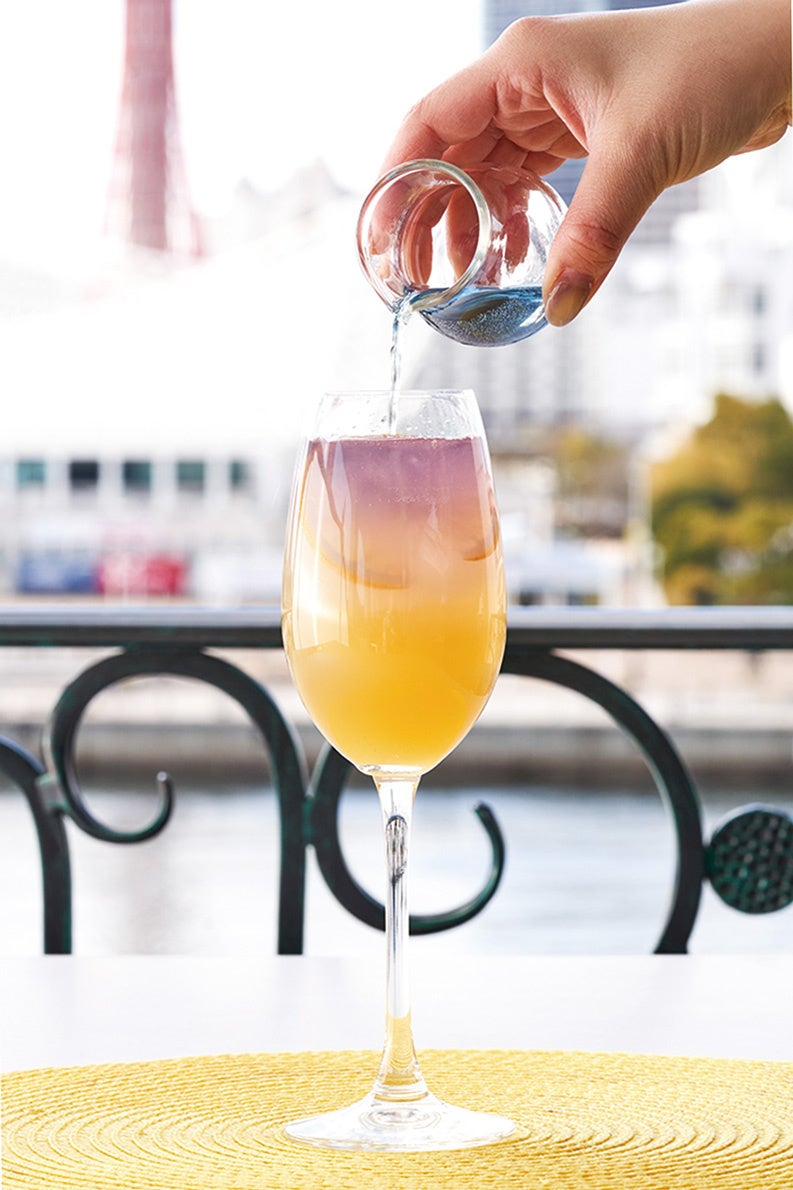パイナップルの甘みとレモンの爽やかな酸味を感じられる軽やかな炭酸で仕上げたレモネードに、鮮やかなブルーのバタフライピーを注ぐと、グラスの中に美しいグラデーションが広がります。