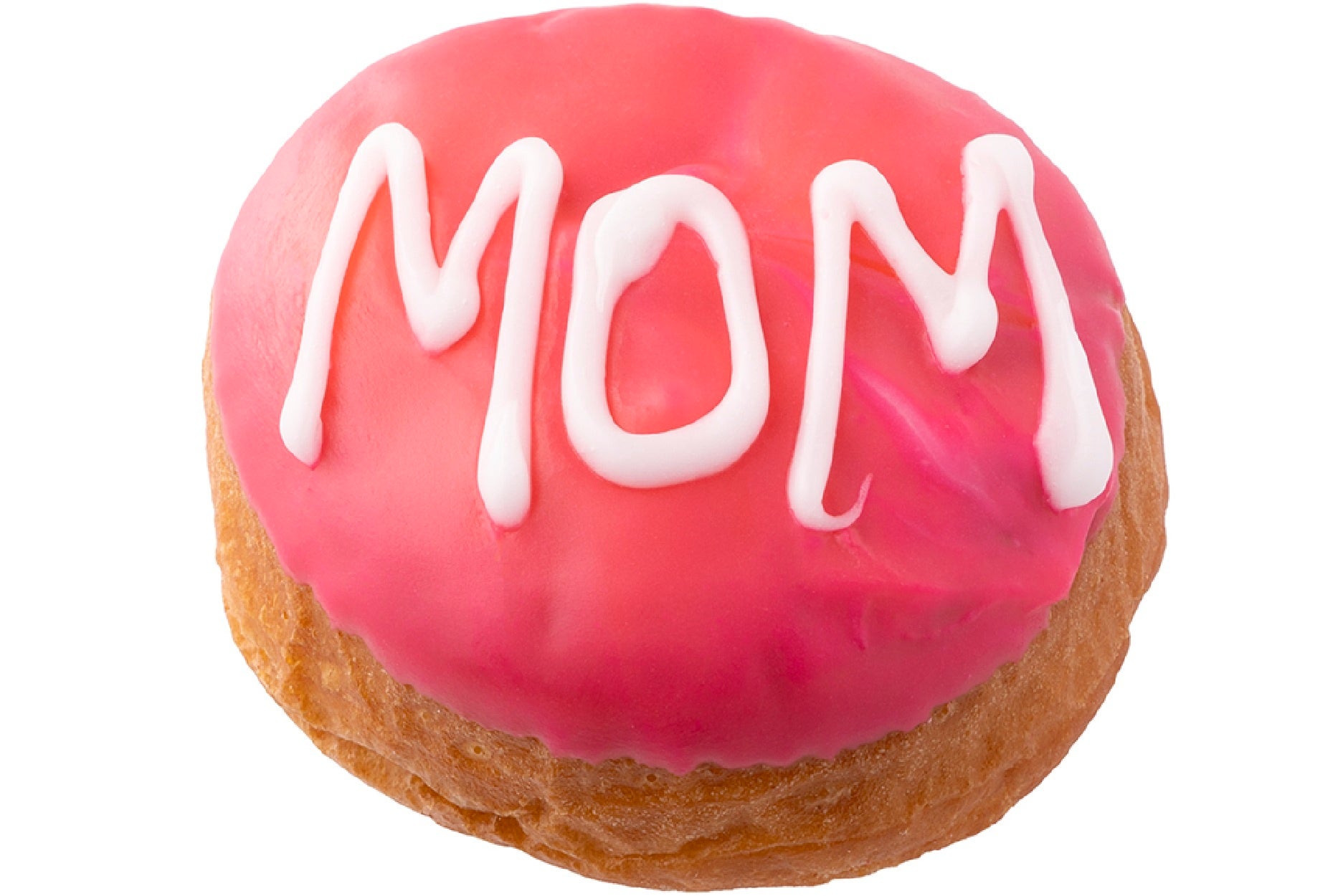 華やかなピンクのアイシングの上に、白のアイシングで「MOM」の文字を描きました。程よい甘さのカスタードクリームをたっぷり詰めたラウンド型のイーストドーナツです。母の日のギフトにぴったりな期間限定商品です。