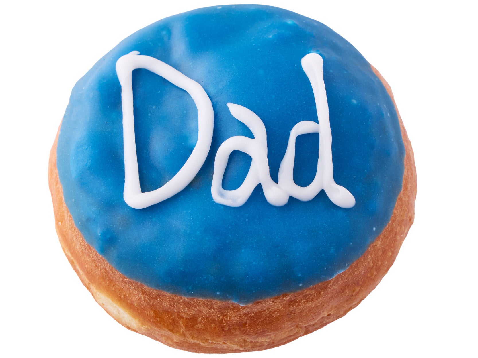 鮮やかなブルーのアイシングの上に、白のアイシングで「Dad」の文字を描きました。程よい甘さのカスタードクリームをたっぷり詰めたラウンド型のイーストドーナツです。父の日のギフトにぴったりな期間限定商品です。