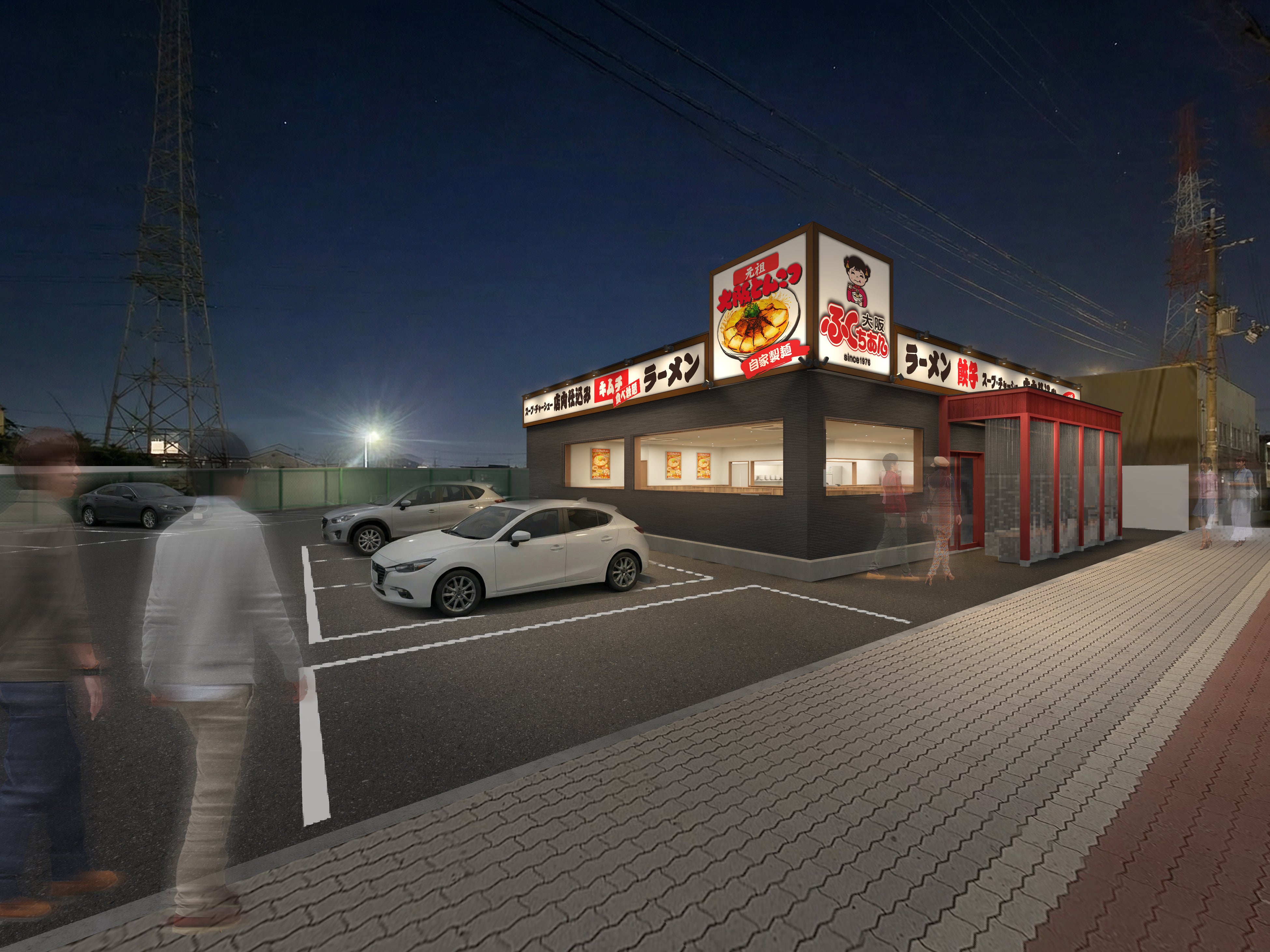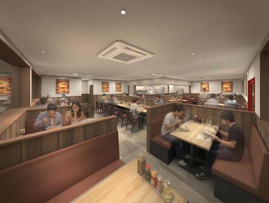 初の旗艦店となる鶴見店のコンセプトは「過去と未来の融合」。これまで“町ラーメン”として、いい意味で「大阪ふくちぁんでいいか」と愛されてきたこれまでのブランドイメージはそのままに、これからは老若男女幅広くご利用いただける“ファミリーラーメン”としての未来のブランドイメージを設計し、新しい「大阪ふくちぁん」の形にチャレンジしました。