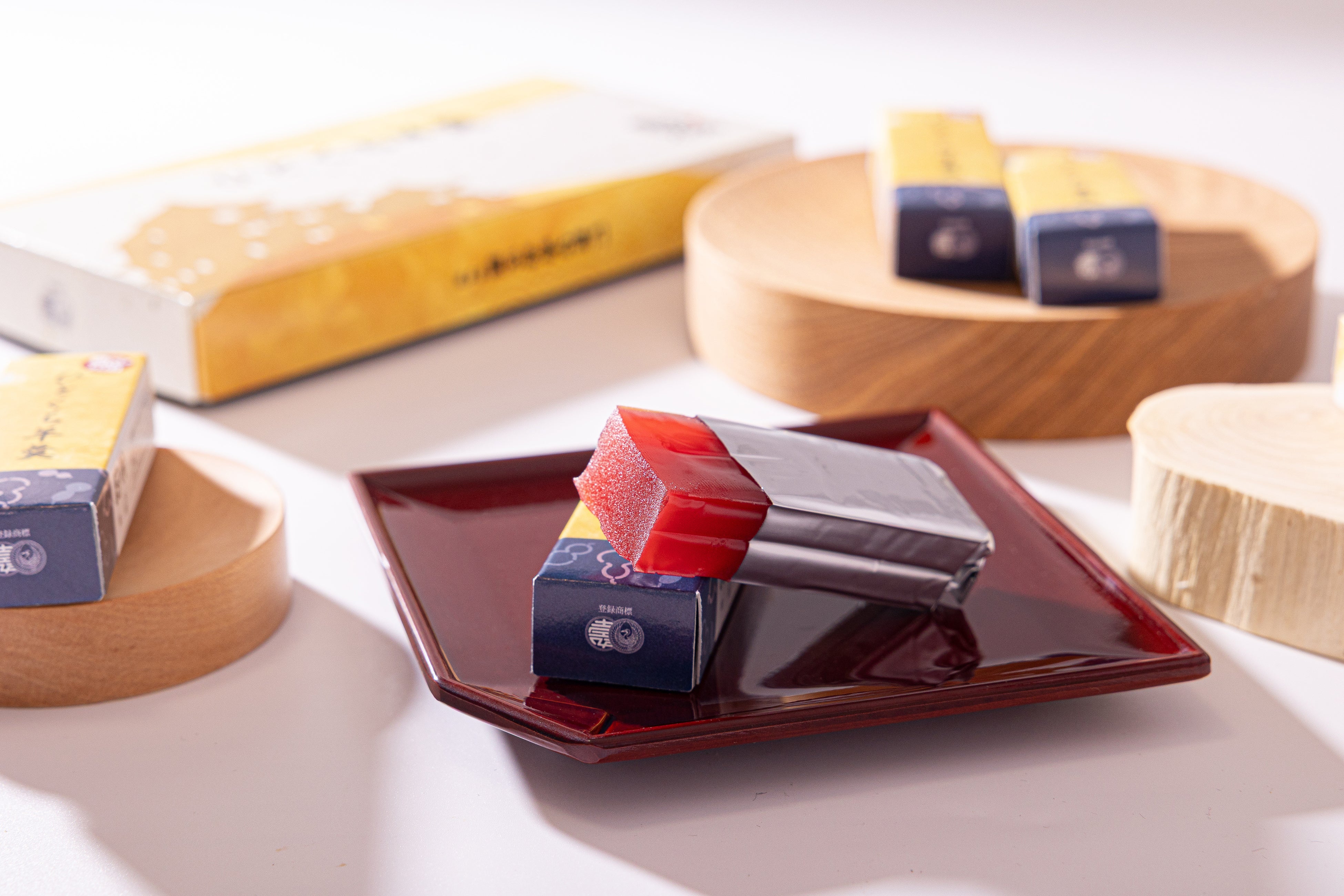 当社五代目善右衛門が考案した“餡を炊き上げる”製法と、六代目が寒天を取り入れて完成した“日本初の練羊羹”の系譜を受け継ぐ一品。上品な甘さを、現代に合わせたひとくちサイズでお楽しみいただけます。パッケージには、羽柴(豊臣)秀吉が弟・秀長に築かせた和歌山城をイメージしてデザインしました。戦国の歴史とともに味わう特別な羊羹です。(税込1512円)