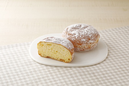 生地に淡路島産牛乳を使用したふわふわ・しっとりした食感が特長の生ドーナツです。ドーナツの表面に粉糖をまぶしました。