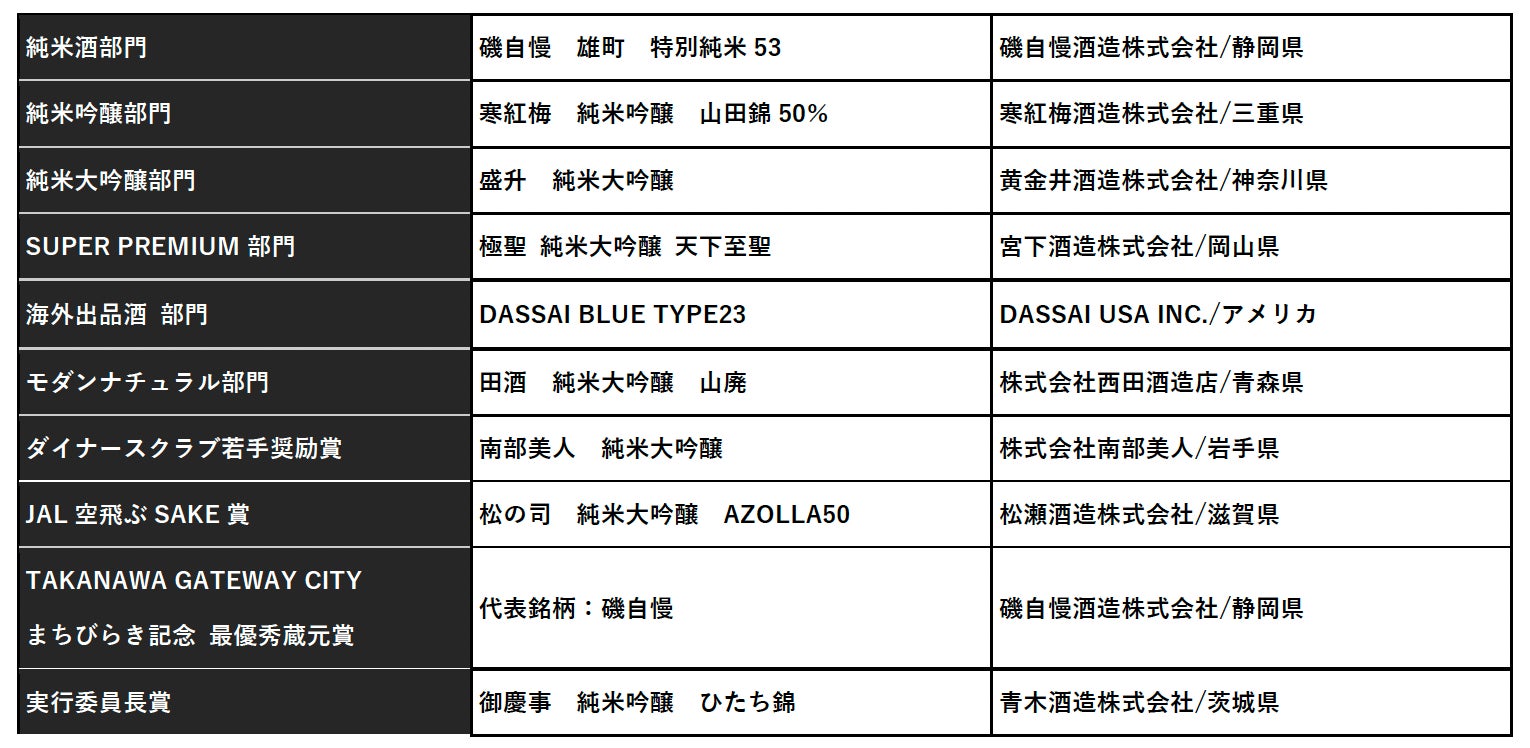 ■TAKANAWA GATEWAY CITY最優秀酒蔵賞