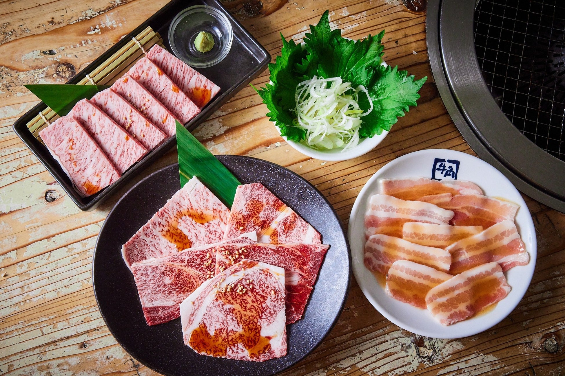 また、「大葉セット(大葉+白ねぎ)」は、香味野菜の爽やかさによって、塩ダレで味付けした豚カルビの脂の甘みを引き締め、軽やかな後味に仕上げます。こってりとさっぱりを同時に楽しめる、相性の良い組み合わせです。黒毛和牛など脂の旨みが強いお肉と合わせることで、上品な余韻を引き立てる楽しみ方も可能です。