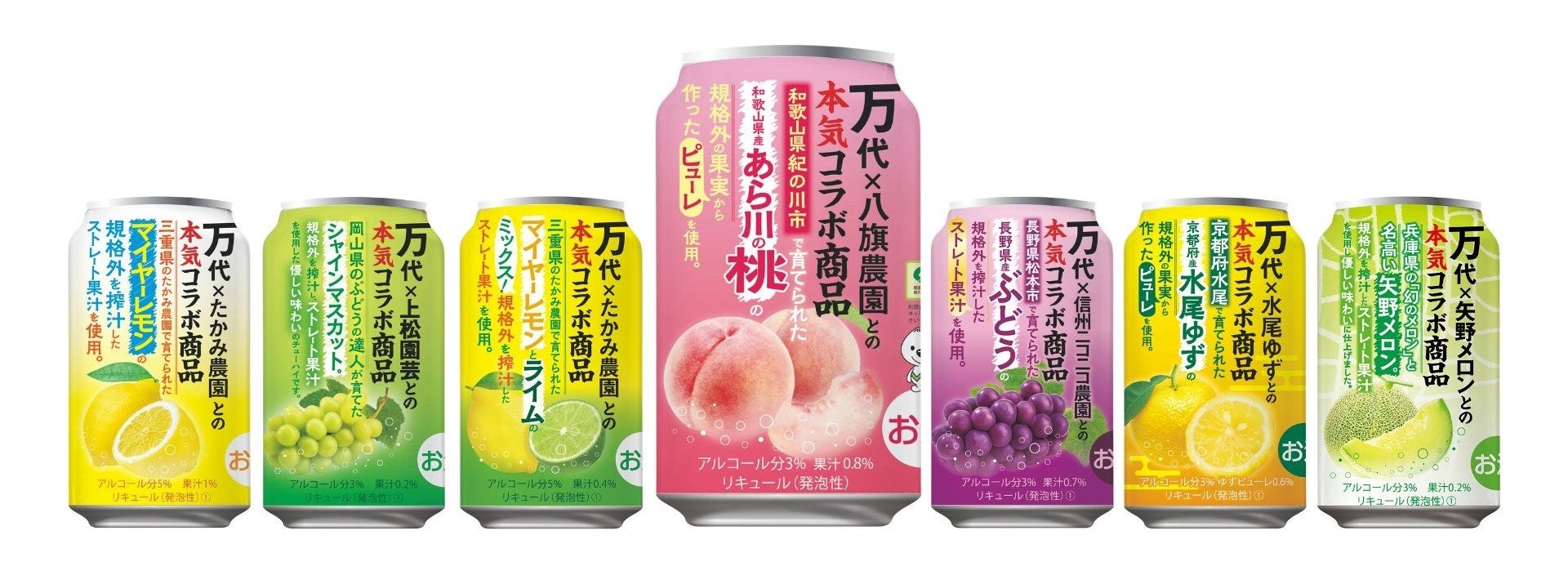 万代では、地域の価値ある食材をお客様に手軽に楽しんでいただき、また、規格外フルーツで食品ロス削減にも貢献するオリジナルのチューハイを販売してきました。一部商品は、素材の確保の関係で数量限定品となっていますが、フレッシュ果汁の味わいがお客様にも高評価で、今回でシリーズ第7弾目となります。