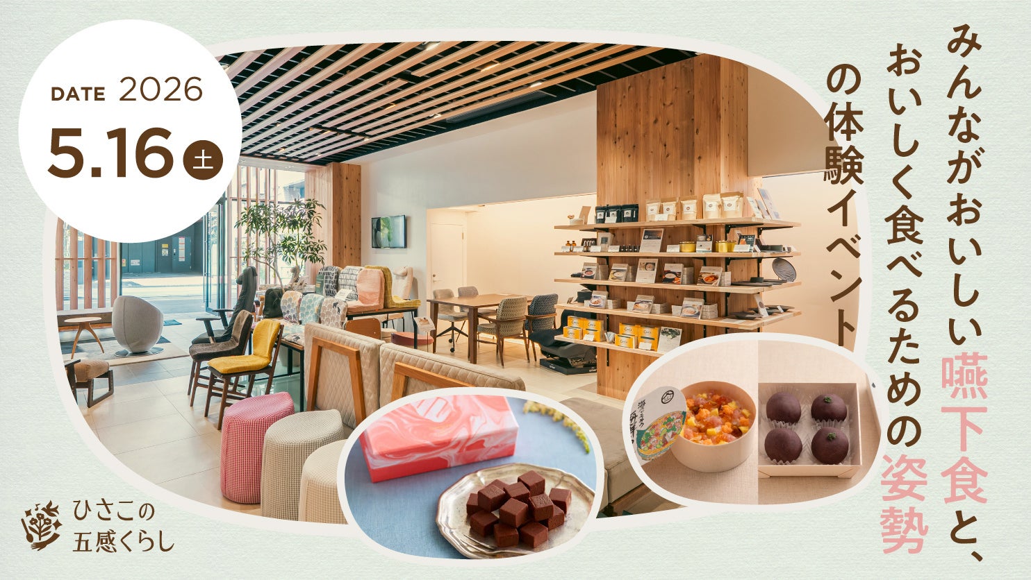 作業療法士の野村寿子がプロデュースする「ひさこの五感くらし 南青山店(東京都港区)」は、2026年5月16日(土)、摂食嚥下に困難を抱える方とそのご家族、そして一般の方々を対象とした「みんながおいしい嚥下食と、おいしく食べるための姿勢の体験イベント」を開催いたします。