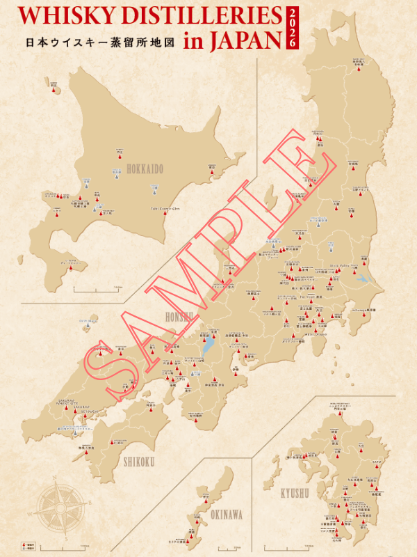 2026年1月時点の稼働中、準備中の日本のウイスキー蒸留所(115ヵ所)を1枚の地図にまとめたポスターです。インテリアにはもちろん、ウイスキーコニサー試験やウイスキー検定の勉強にもご活用いただけます。
