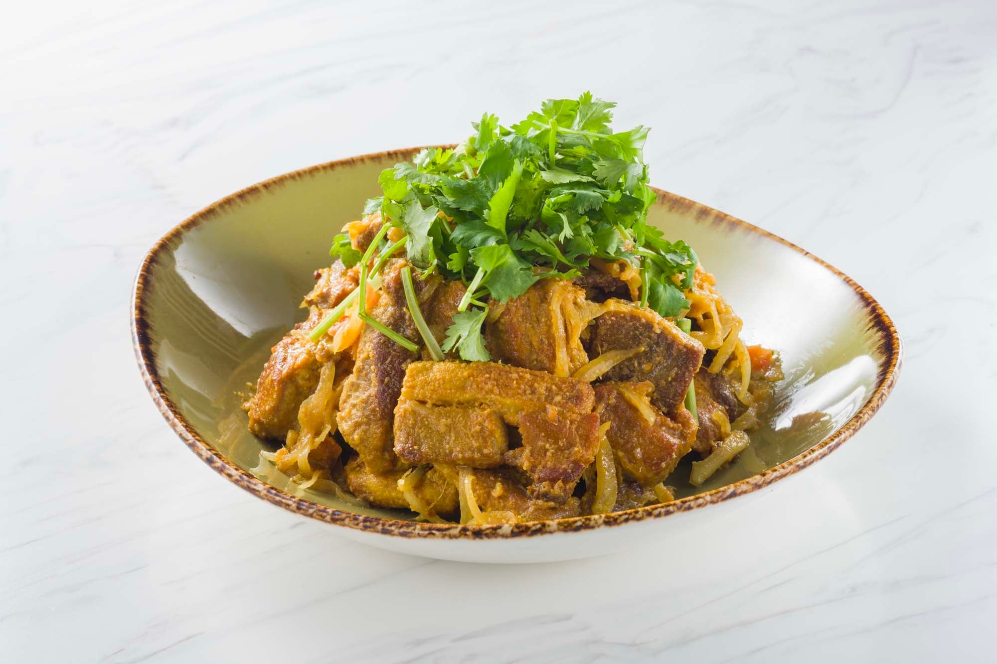 グリルした豚肉を食べやすくカットし、クミンやコリアンダー、唐辛子、にんにくなどのスパイスと和えることで、香り高く奥行きのある味わいに仕上げました。