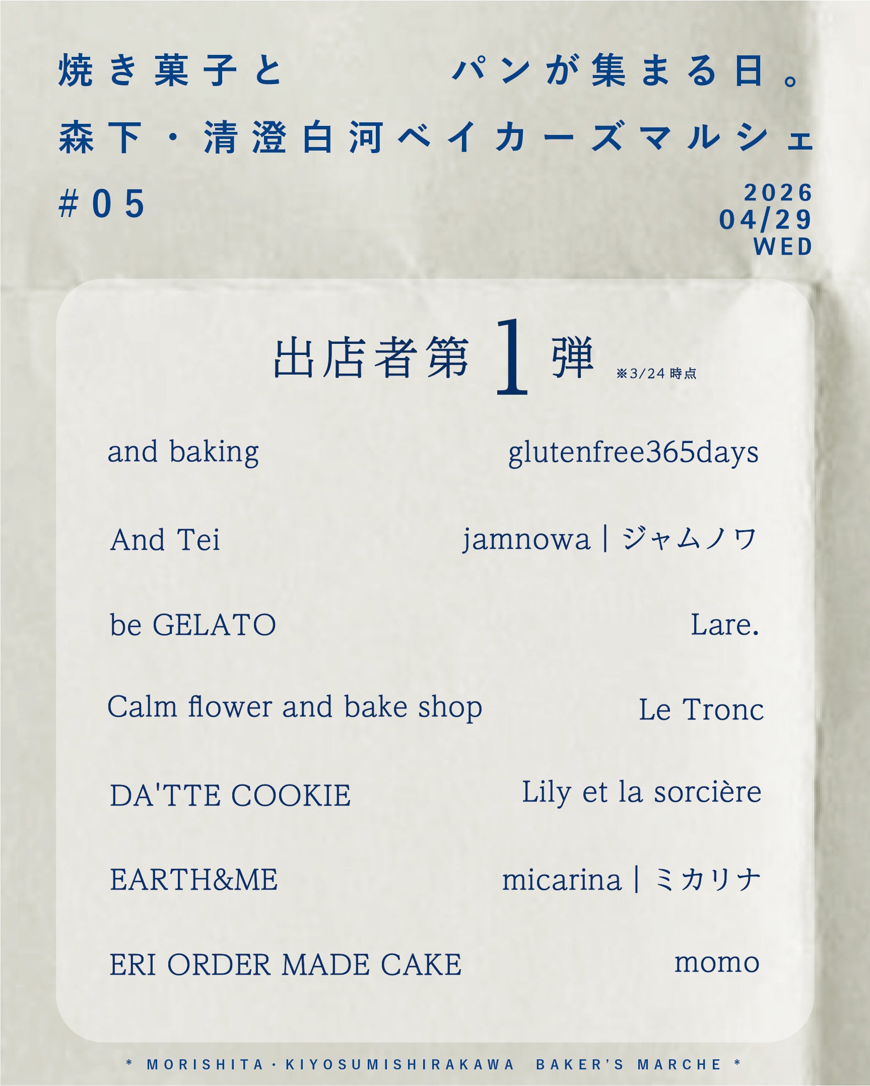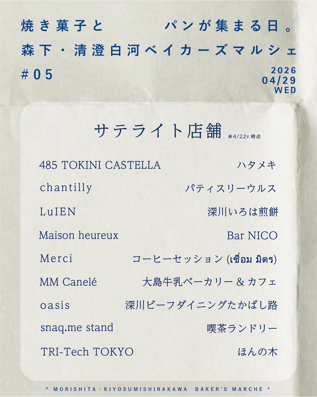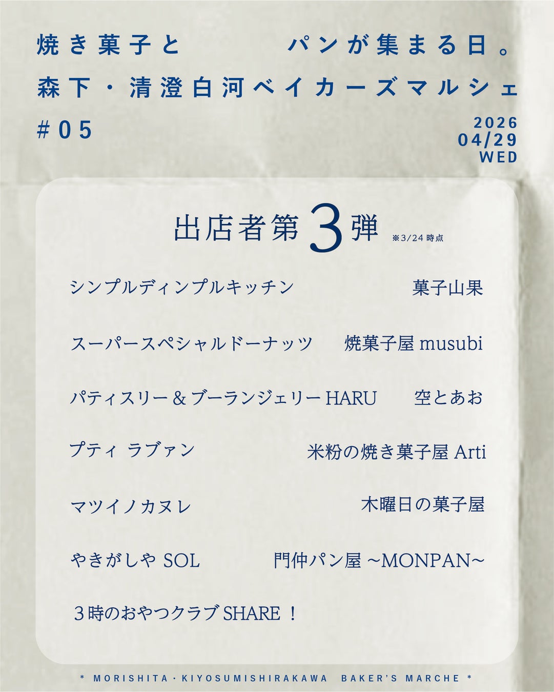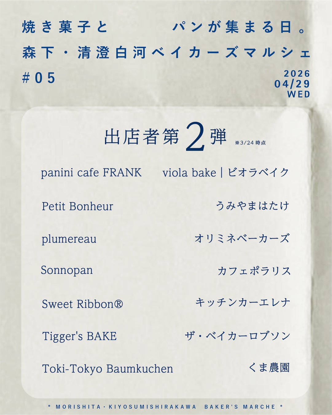 4月29日(水・祝)「焼き菓子とパンが集まる日。」をテーマにした『森下・清澄白河ベイカーズマルシェ』の第5回が開催決定!