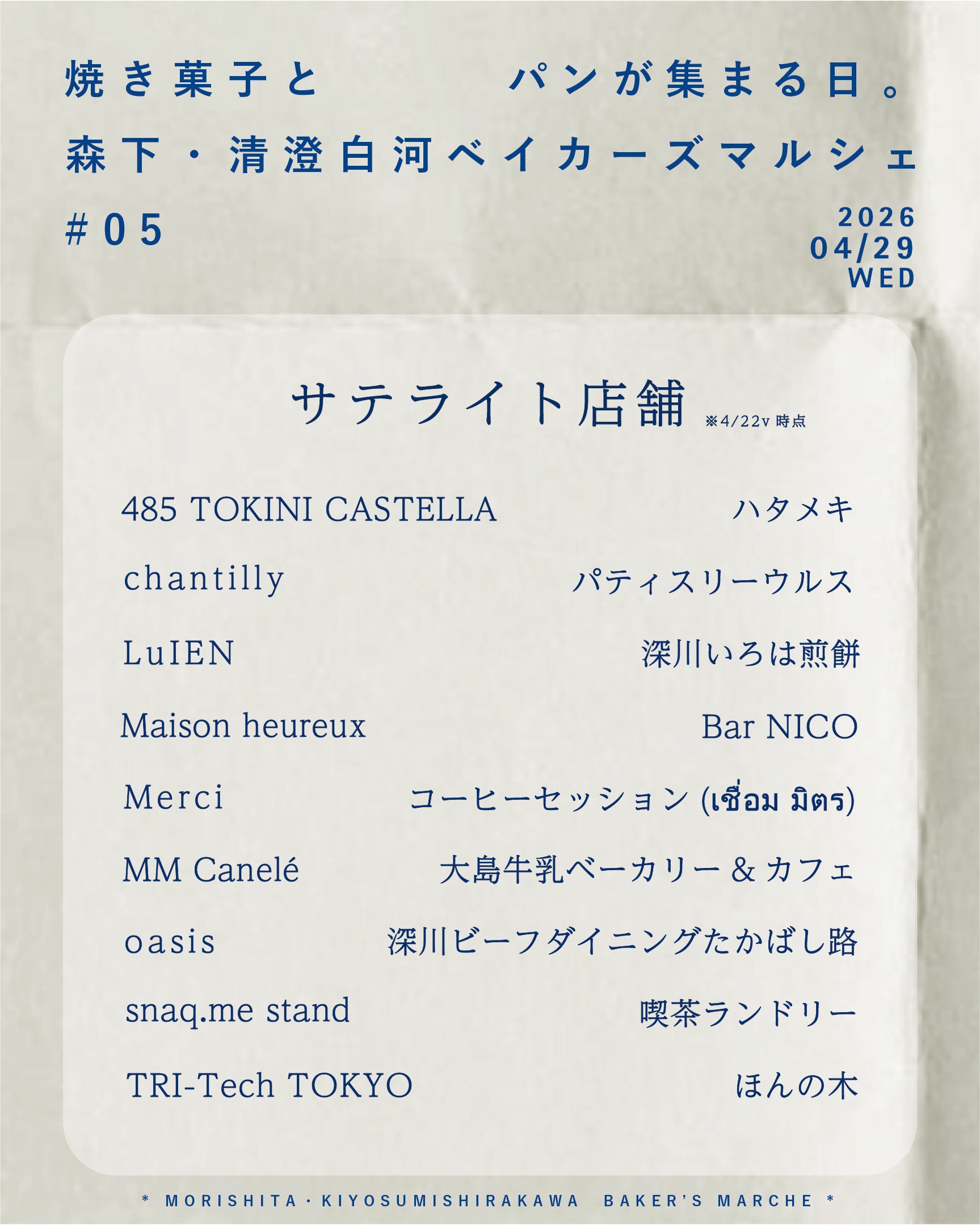 ※サテライト同時出店:江東区門前仲町1丁目2-4BASE門前仲町