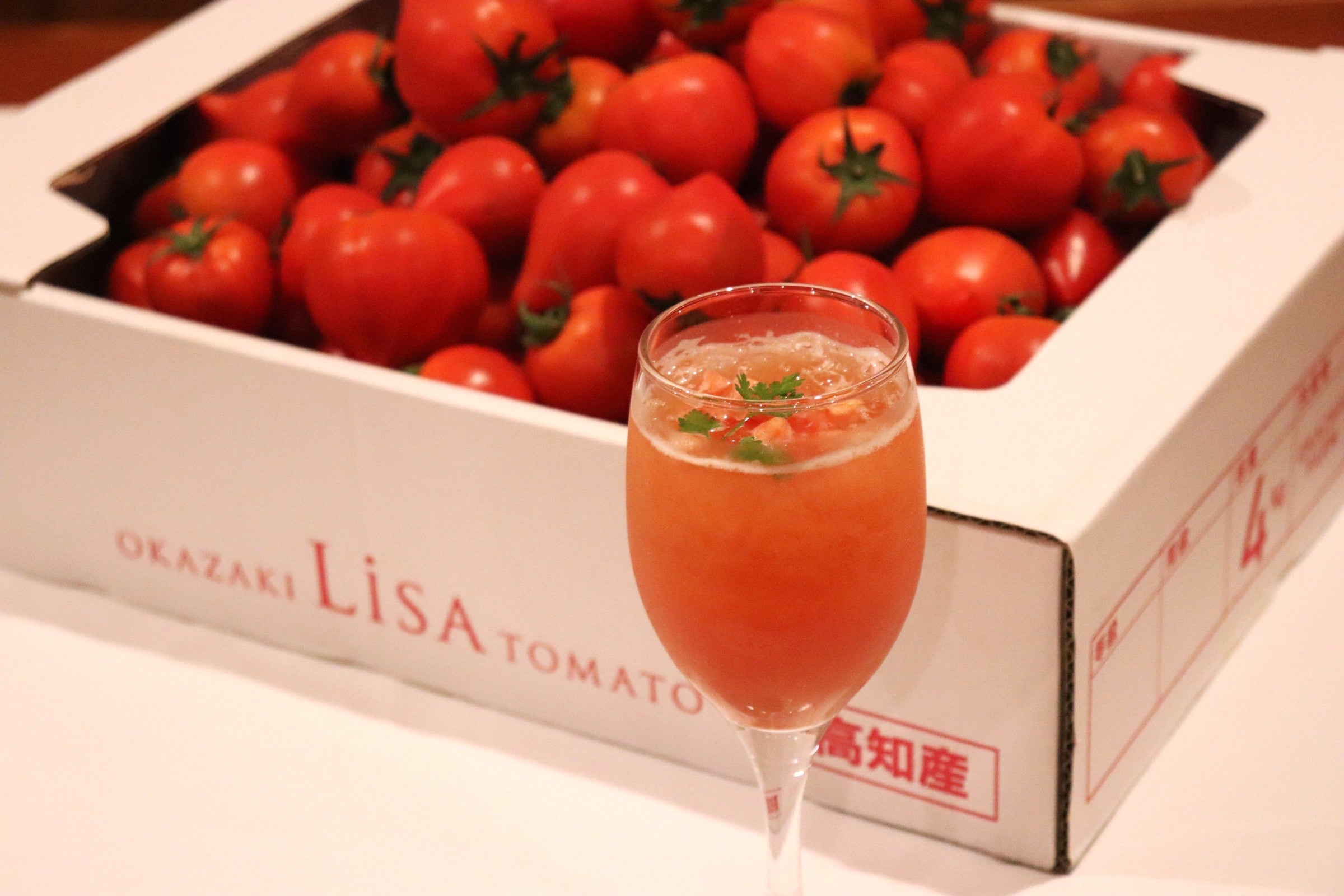 今回使用するのは、高知県のおかざき農園で生産された「LiSAフルーツトマト」で、水分を極限まで抑えて育てることで糖度8度以上を実現した高糖度トマトです。一般的なトマトと比べて酸味が控えめで、甘みが際立つ味わいが特徴です。