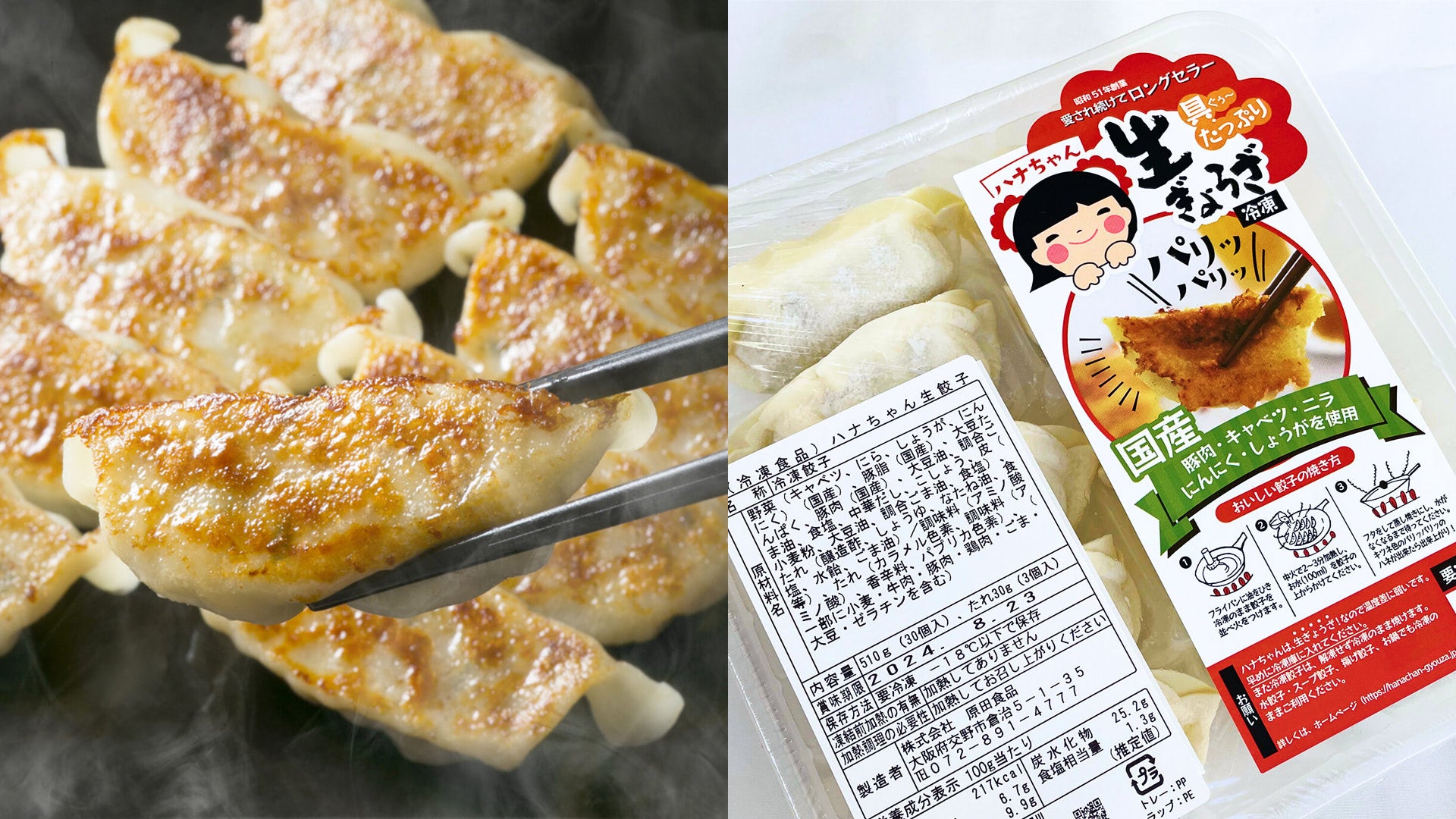 現在は餃子の皮や餡もすべて自社工場で一から製造し、なにわポーク生ぎょうざ、九条ねぎ生ぎょうざ、大吟醸生ぎょうざなど常時15種類以上の生餃子を販売。2017年には、旨味調味料・保存料無添加を基本とした新ブランド「交野はらだや」を立ち上げ、地元・北河内の食材を活用した生ぎょうざシリーズも展開しています。