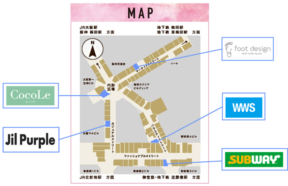 所在地:〒530-0001 大阪市北区梅田1丁目大阪駅前ダイヤモンド地下街