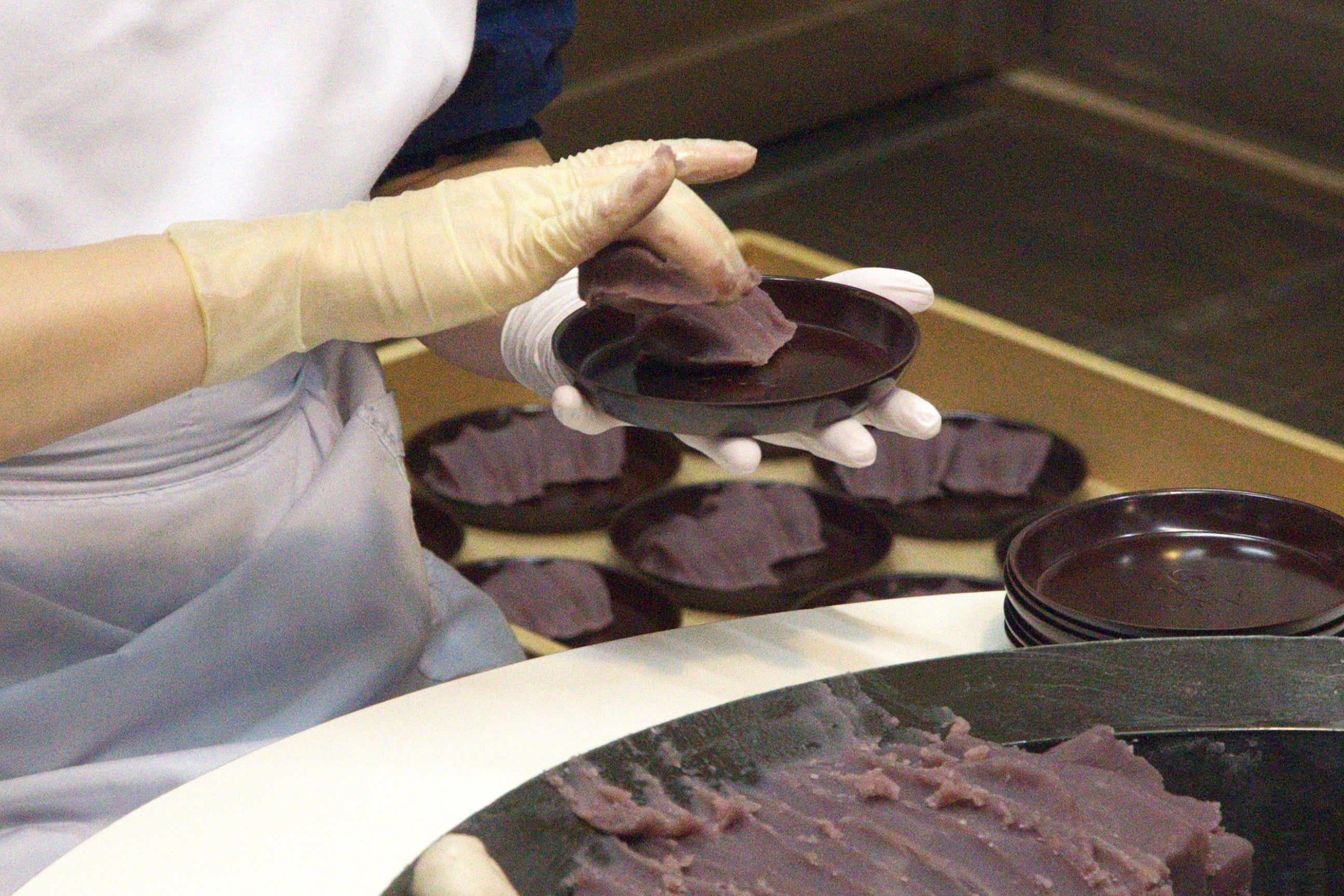 会場では、「餅入れ」と呼ばれる職人が一つひとつ仕上げる“つくりたての赤福餅”を店内でお召し上がりいただける実演販売を実施いたします。