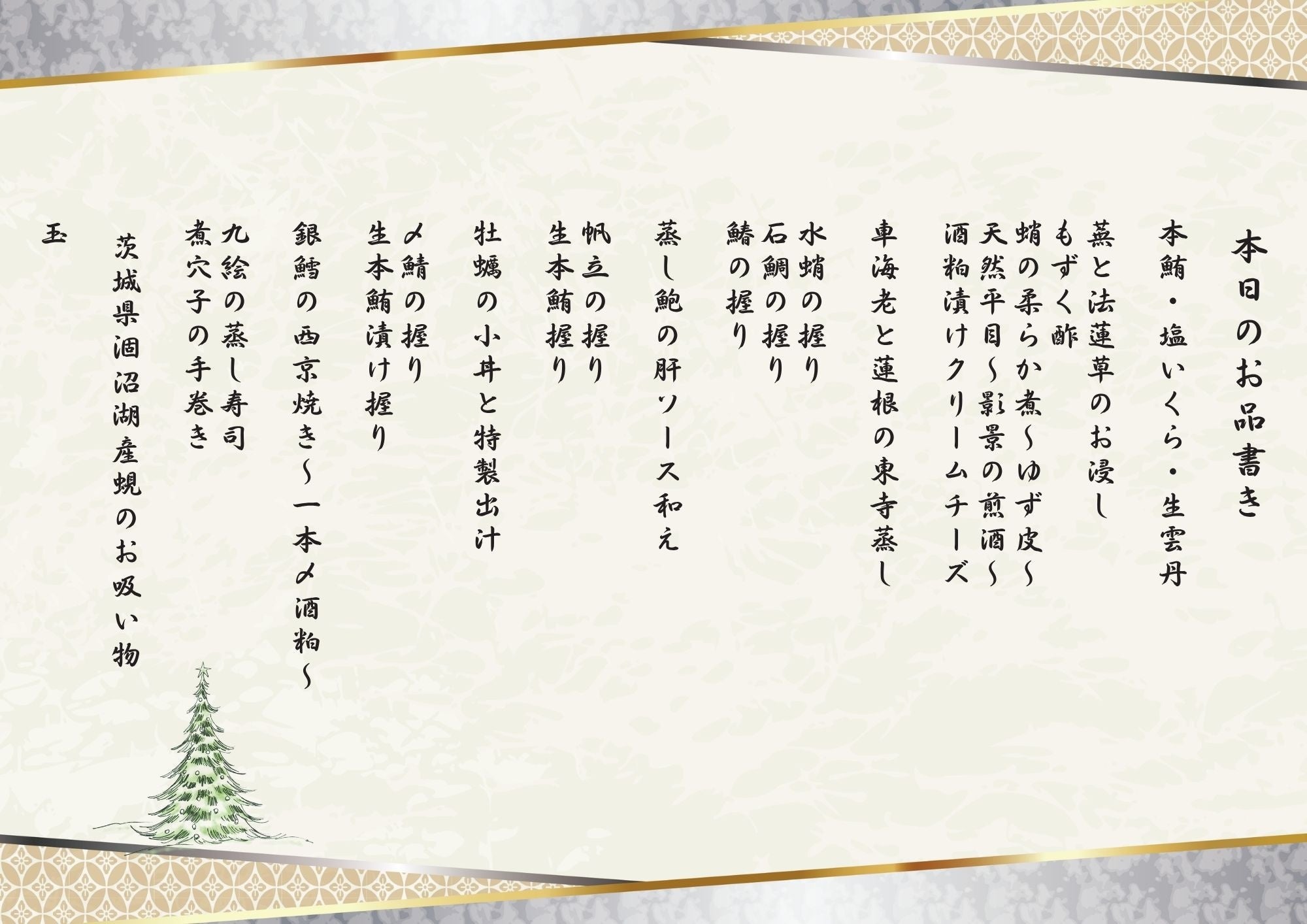 「天」は天の恵み。魚や食材への敬意を払う意味合いで、同様に店名に加えております。