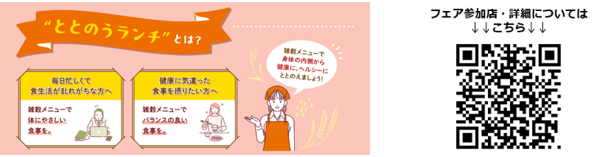 『主食改革』を提唱する穀物のリーディングカンパニー株式会社はくばく(本社:山梨県中央市、代表取締役社長:長澤 重俊)は2026年5月1日(金)から5月31日(日)の期間、首都圏および山梨県の飲食店15店舗にて『第4回ととのうランチフェア』を開催いたします 。