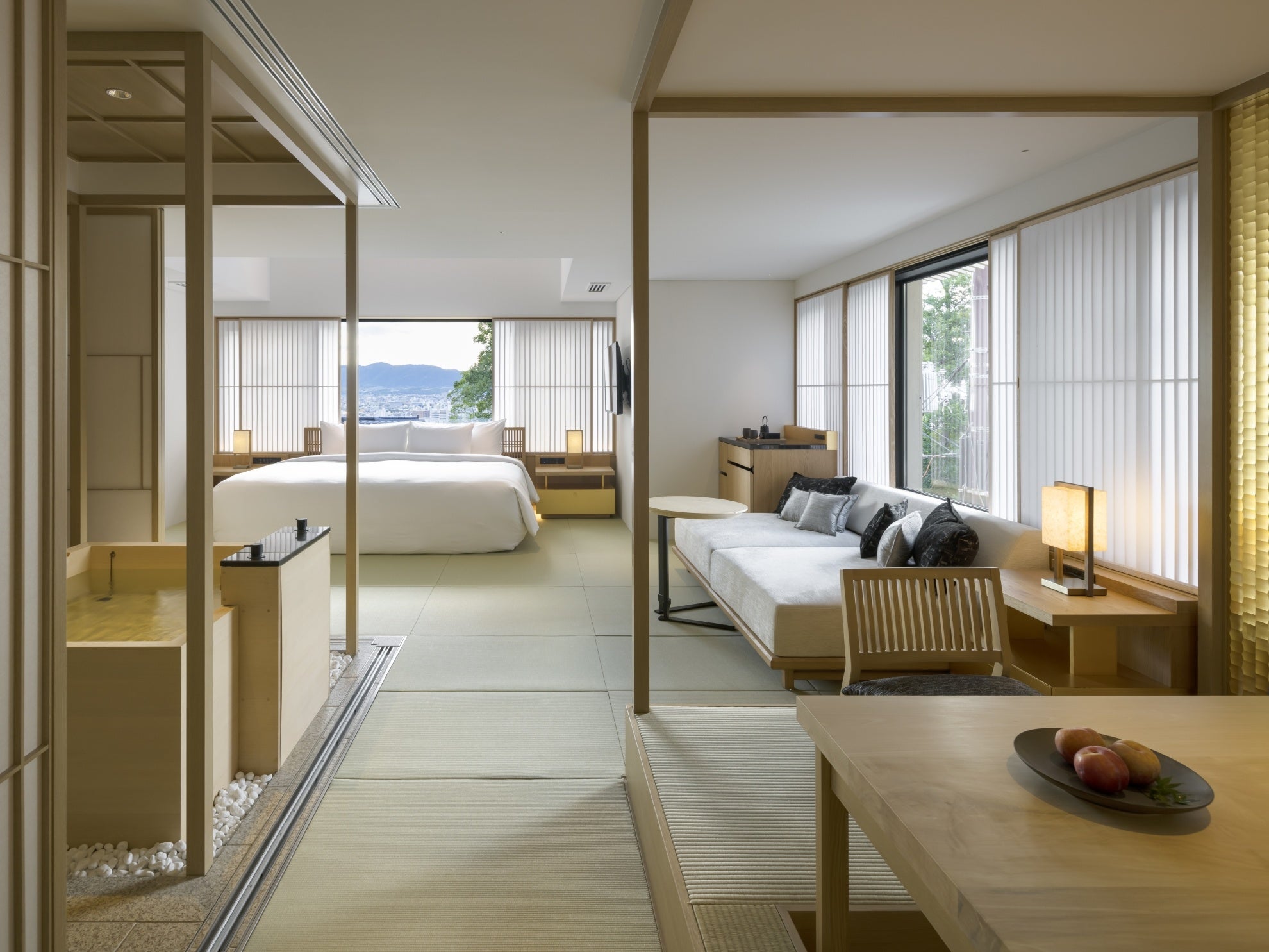 清水寺の隣に位置し、京都市街を見渡す東山の高台に佇む全52室の当ホテルは、山の竹林に抱かれ豊かな自然を有する聖域です。天然温泉を備え祇園の観光名所まで徒歩圏内と利便性が高いながらも、喧騒から離れた静寂の空間をご提供します。