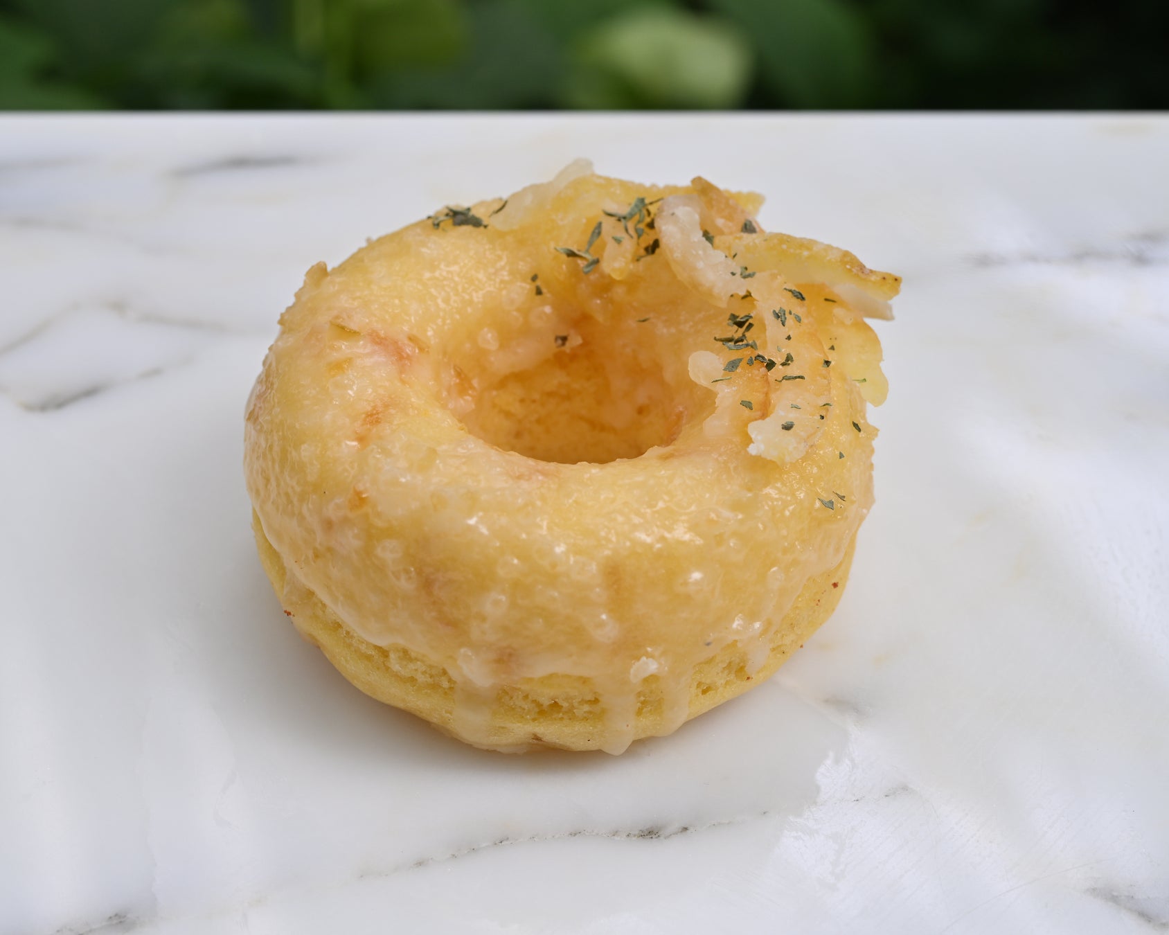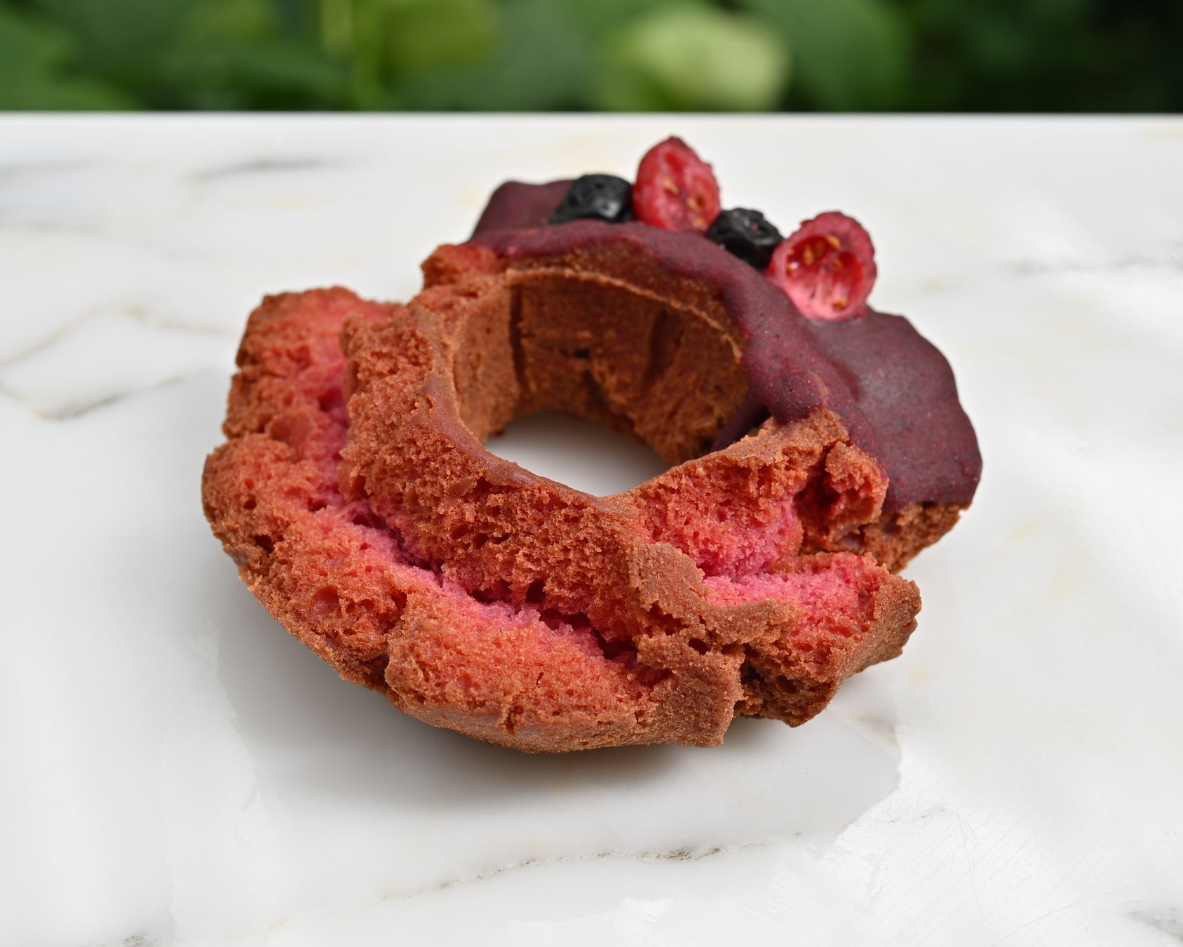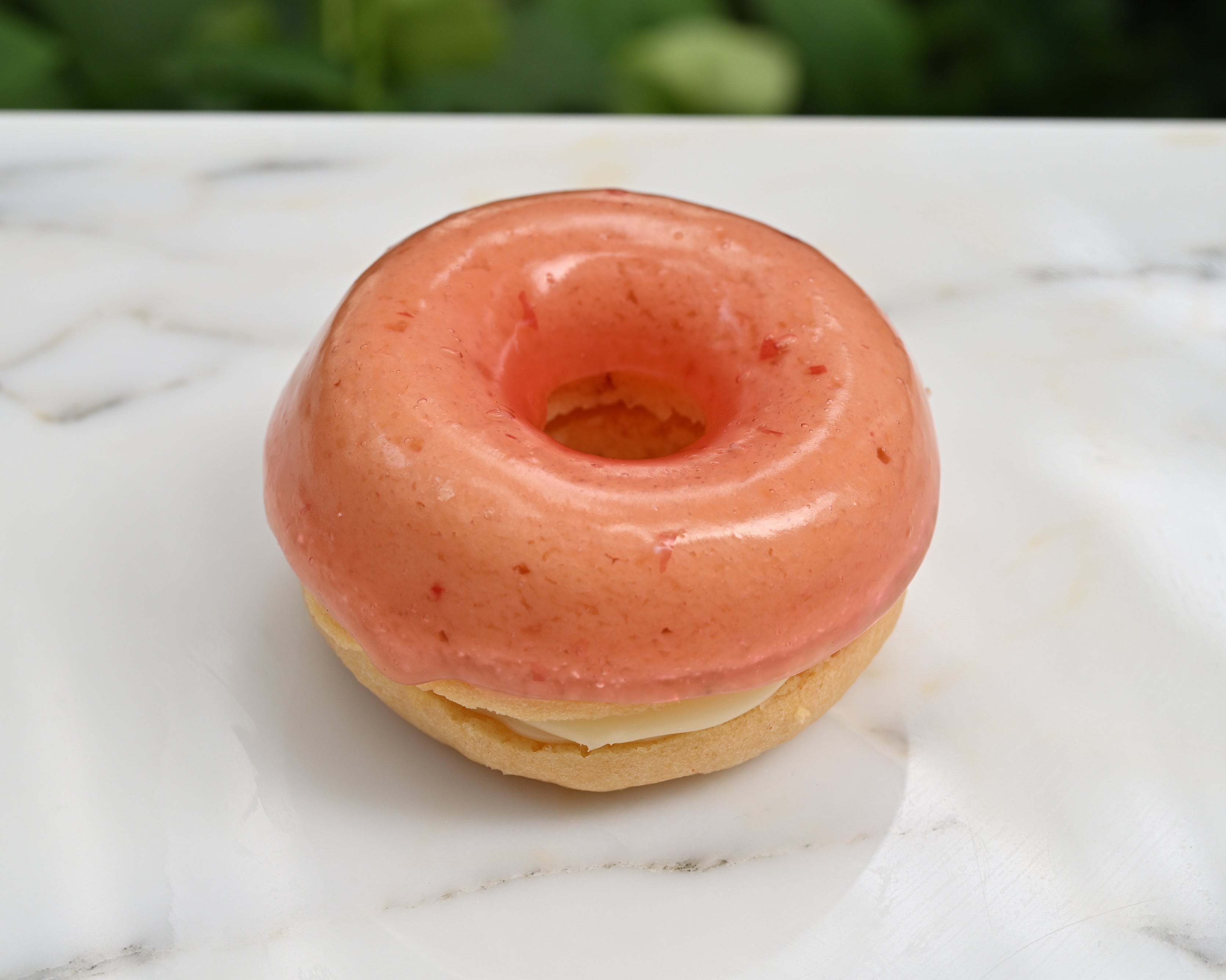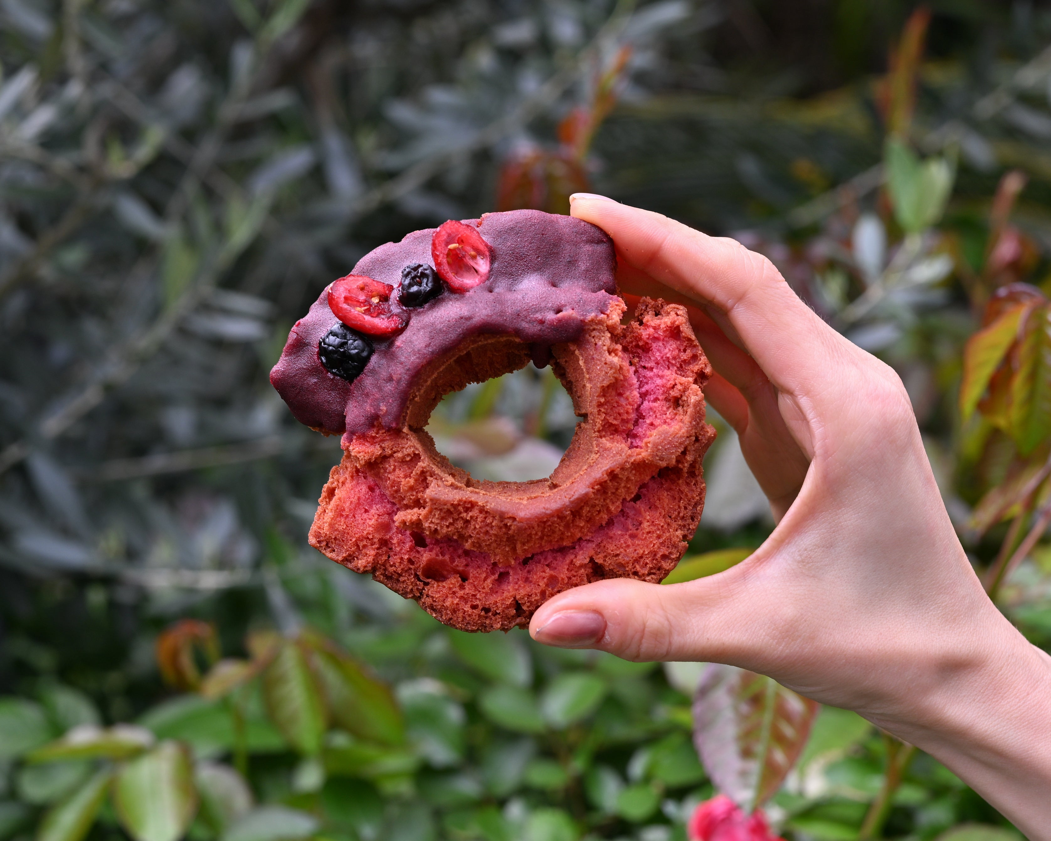 ローズオイルを練り込んだ生地にクリームチーズをサンドし、ローズゼリーをトッピング。華やかな香りが立ち上がる、紀尾井町ローズ祭りに合わせた限定ドーナツです。
