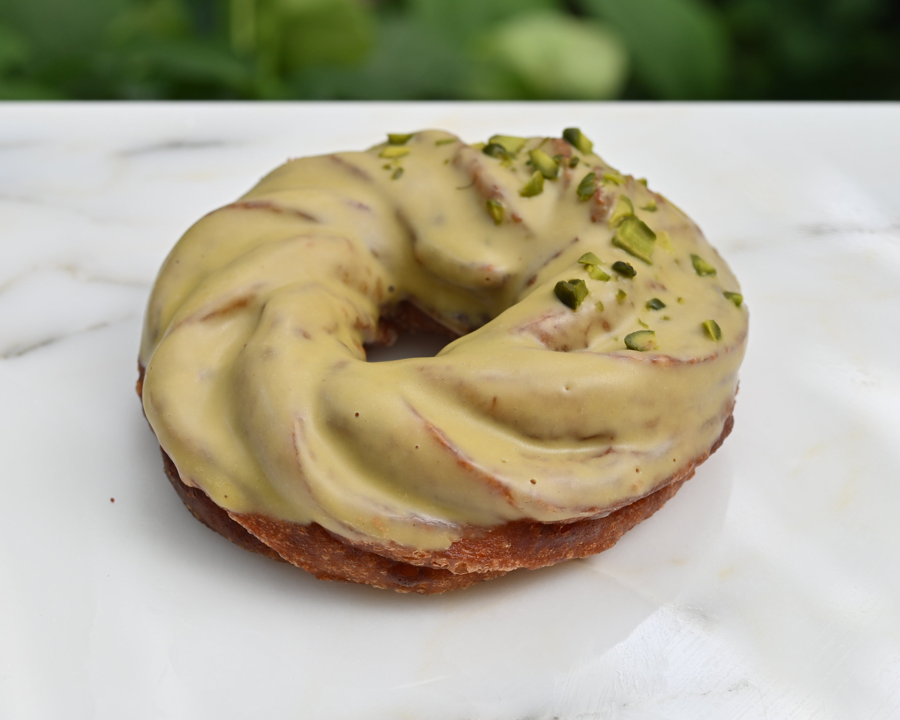 軽やかな食感のフレンチクルーラーに、ピスタチオ香るホワイトチョコレートをコーティング。ローストピスタチオの食感がアクセントとなり、最後まで軽やかに楽しめます。