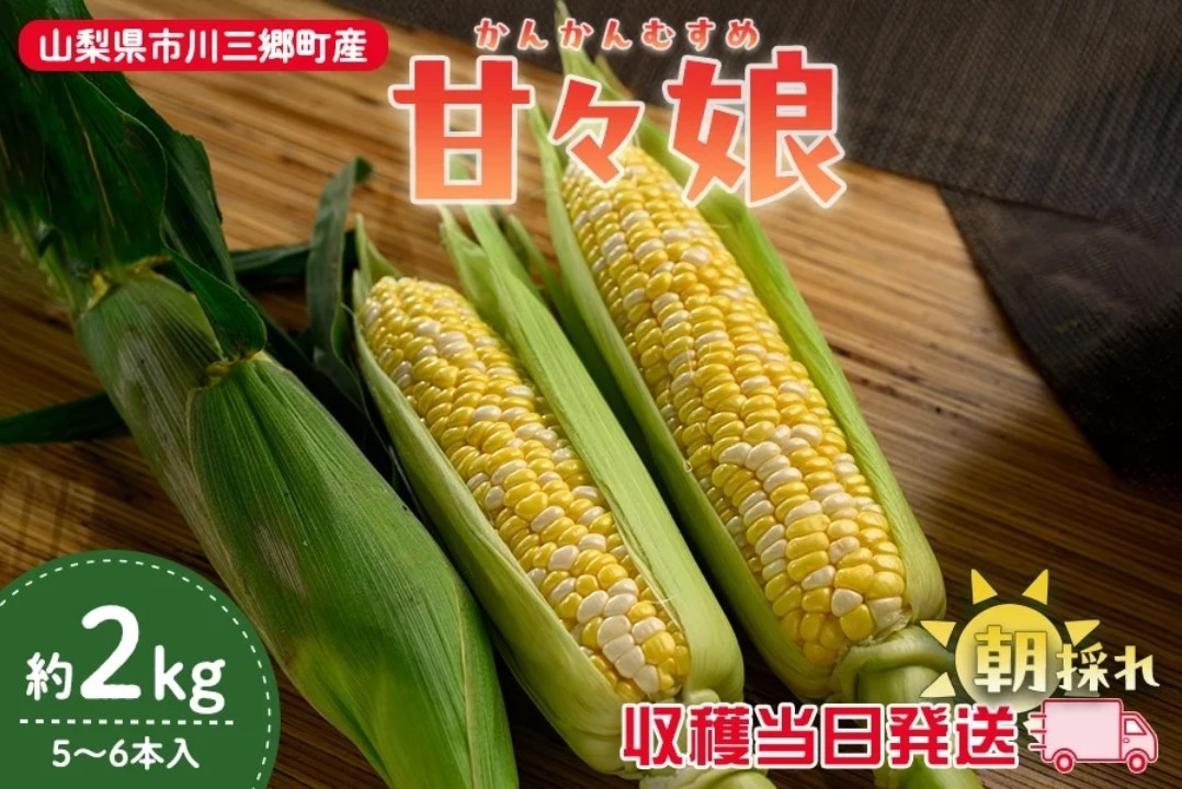 【山梨県市川三郷町産】甘々娘 約2kg(5~6本入り)6月12日頃より発送予定【収穫当日発送】 https://www.ja-town.com/shop/g/g3701-2128/■とうもろこし 販売商品一覧
