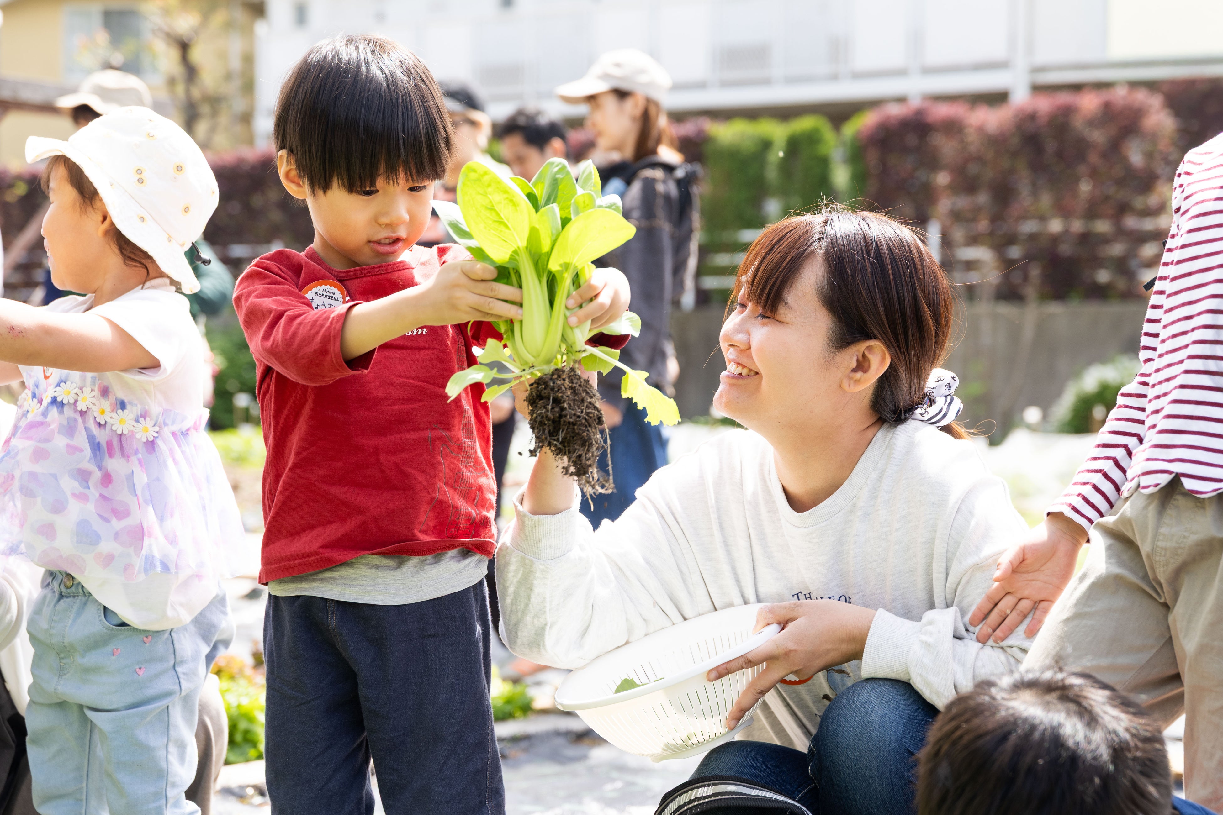 農園を借りていただいている企業、団体に加え、カゴメのお客さまをはじめとする一般の方を対象にした野菜栽培や収穫、食育などのイベントを定期的に開催します。