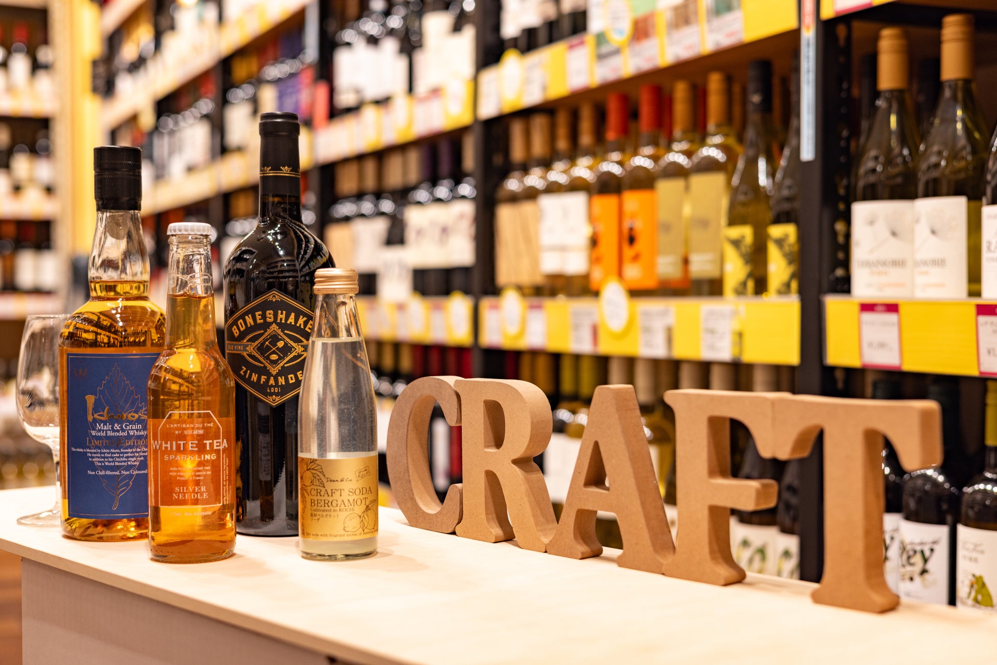 「LIQUOR WAREHOUSE CRAFT」は、単なる酒販店ではなく、少量生産や手作りにこだわった商品を世界中から集めたセレクトショップです。 クラフトビール、ワイン、ウイスキー、地酒などの少量生産のお酒に加え、丁寧に作られたおつまみ、調味料、お菓子などの“クラフト食品”まで幅広く展開します。