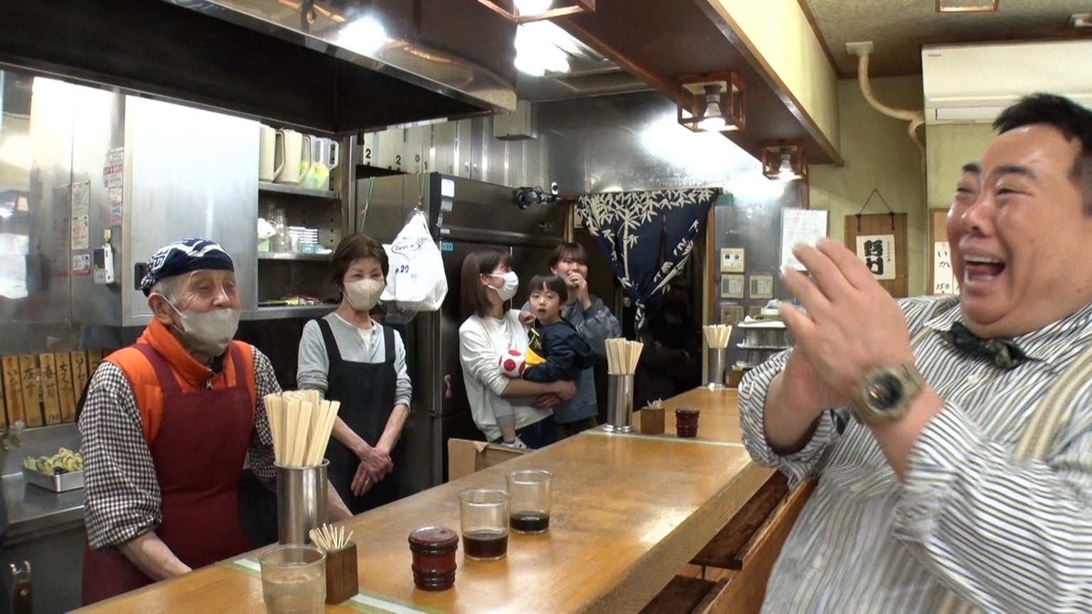 肝心の店の味はというと、父の代から続くつゆの配合とトッピング、注文ごとに握るおにぎりは変わらずに娘、そして孫へと受け継がれていた。そして、40年前から使い続けているプラスチックの赤い器などエモさを感じる空間に塚地も浸る。さらに、どこか放っておけない店に集まる、人の手。常連たちが水道を直し、椅子を持ち込み、壁紙を張り替え…。気づけば、店は少しずつ“人の手”で出来上がってきた。