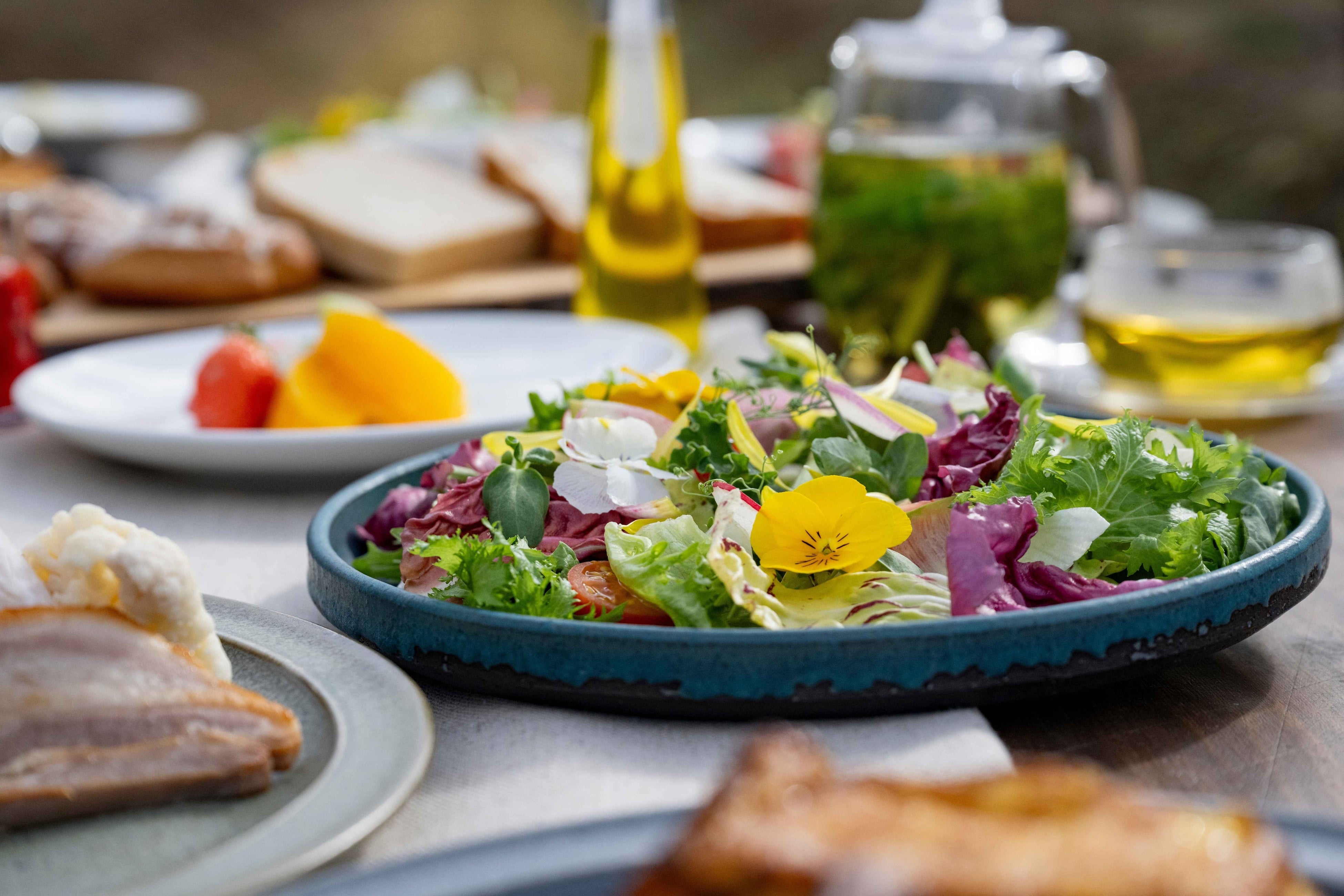 レストランの窓の外には見渡す限りのオリーブ園が広がり、 まるで地中海を訪れたかのような開放感を提供。食事の前後には園内を散策でき、 農園の空気や土の香りを感じることで、心身をリセットするひとときを提案します。