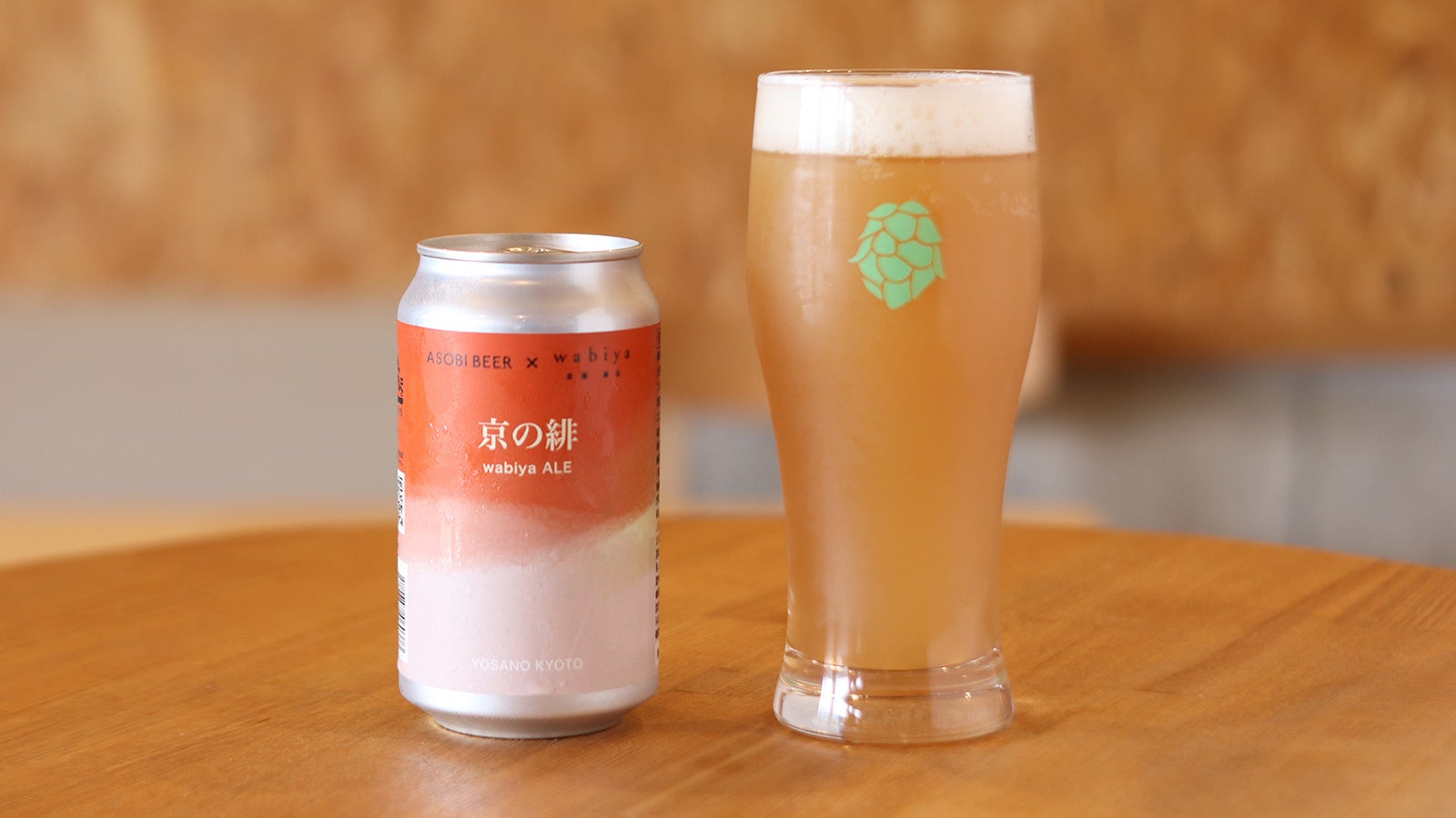掲載を記念し、京都・与謝野町発のクラフトビールブランドASOBI BEERとのコラボレーションによる、wabiyaオリジナルクラフトビール(※)を発売いたします。目指したのは、焼き鳥とのペアリングを考えた、コクのあるしっかりとした飲み口。オリジナルの和紅茶「京都紅茶」と、京都府産早摘みグリーンレモン・京檸檬、そして金木犀をかけ合わせて、素材の味を引き立てるオレンジワインのような味わいに。ワイングラスに注ぐことで豊かな香りが立ち上がります。“ハレの日”をwabiyaらしく彩る、オリジナルクラフトビールです。