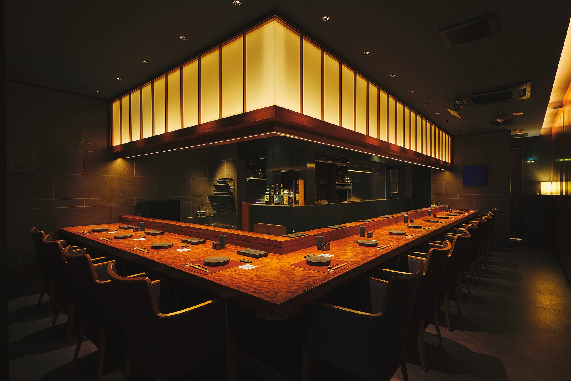 路地を進み扉を開けると、薪火を囲むカウンター8席のみの隠れ家空間が広がります。京都福知山から届く京地どりと亀岡の七谷鴨、京都の野菜を中心に季節の移ろいを感じさせる逸品に仕上げたおまかせコースのみ。総料理長 秋山の長年の経験から導き出した「焼ききる」を信条に、炭と薪を使い分け、素材本来のうま味を最大限に引き出します。