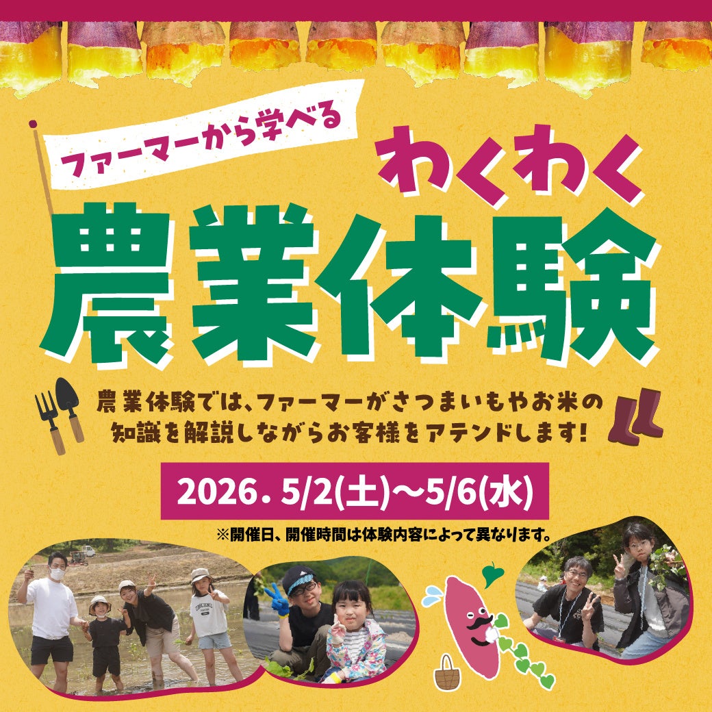 さつまいもの苗植えや田植え、春野菜の収穫体験など、ファーマーから直接学べる体験型コンテンツを多数ご用意。育てる楽しさから食べる喜びまで、食と農の魅力を親子で体感できます。