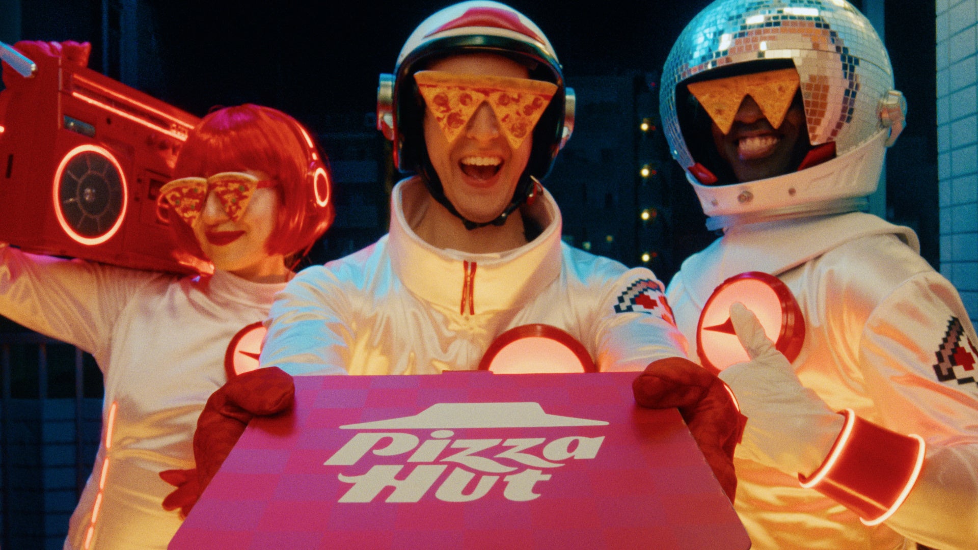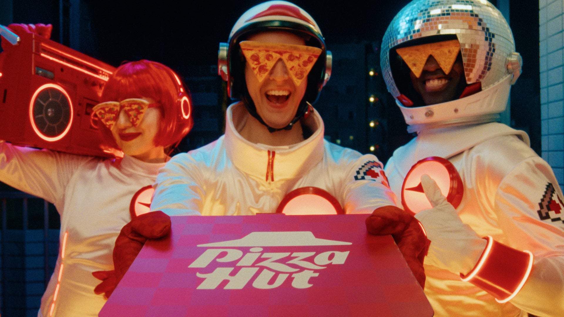 新TVCMシリーズ(「ハット星人がチキン南蛮ピザをお届け」篇・「ハット星人が2枚目無料をお知らせ」篇・「ハット星人がハットの日をお知らせ」篇)では、ピザハットが日本の食卓に最高のJOYをお届けする存在として、新キャラクター「ハット星人」が初登場します。彼らはピザハットロゴ型のUFOに乗って、何気ない日常を過ごす家族の前に突如として現れます。箱を開けた瞬間のピザの香りとおいしさで、家族のテンションを最高潮に爆上げしていく様子をコミカルに描きました。ピザを見た瞬間に歓喜し、リビングがパーティー会場へと変わる驚きの展開を通じて、ピザハットがお届けする「おいしさ」と「楽しさ」を日本全国へ発信してまいります。
