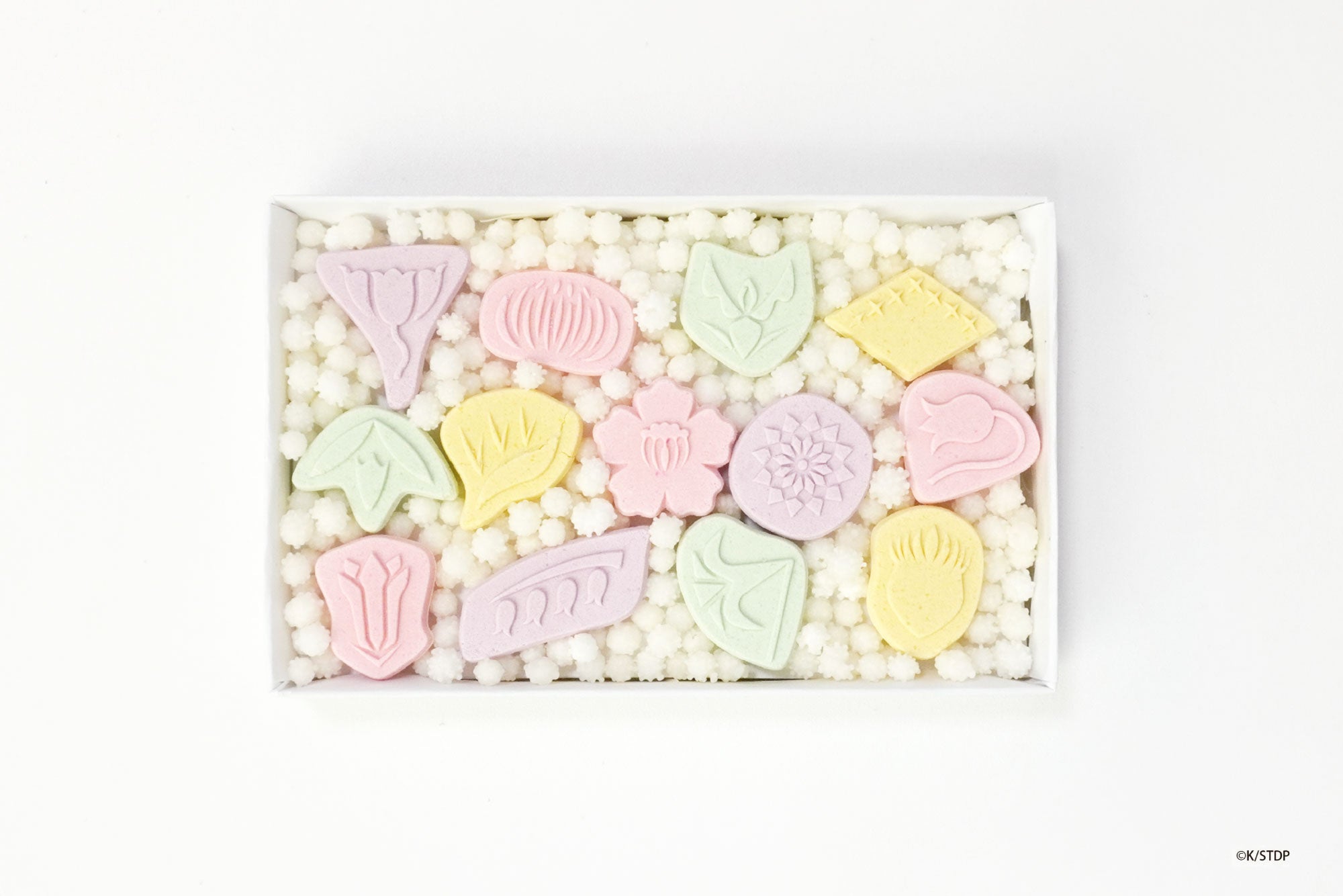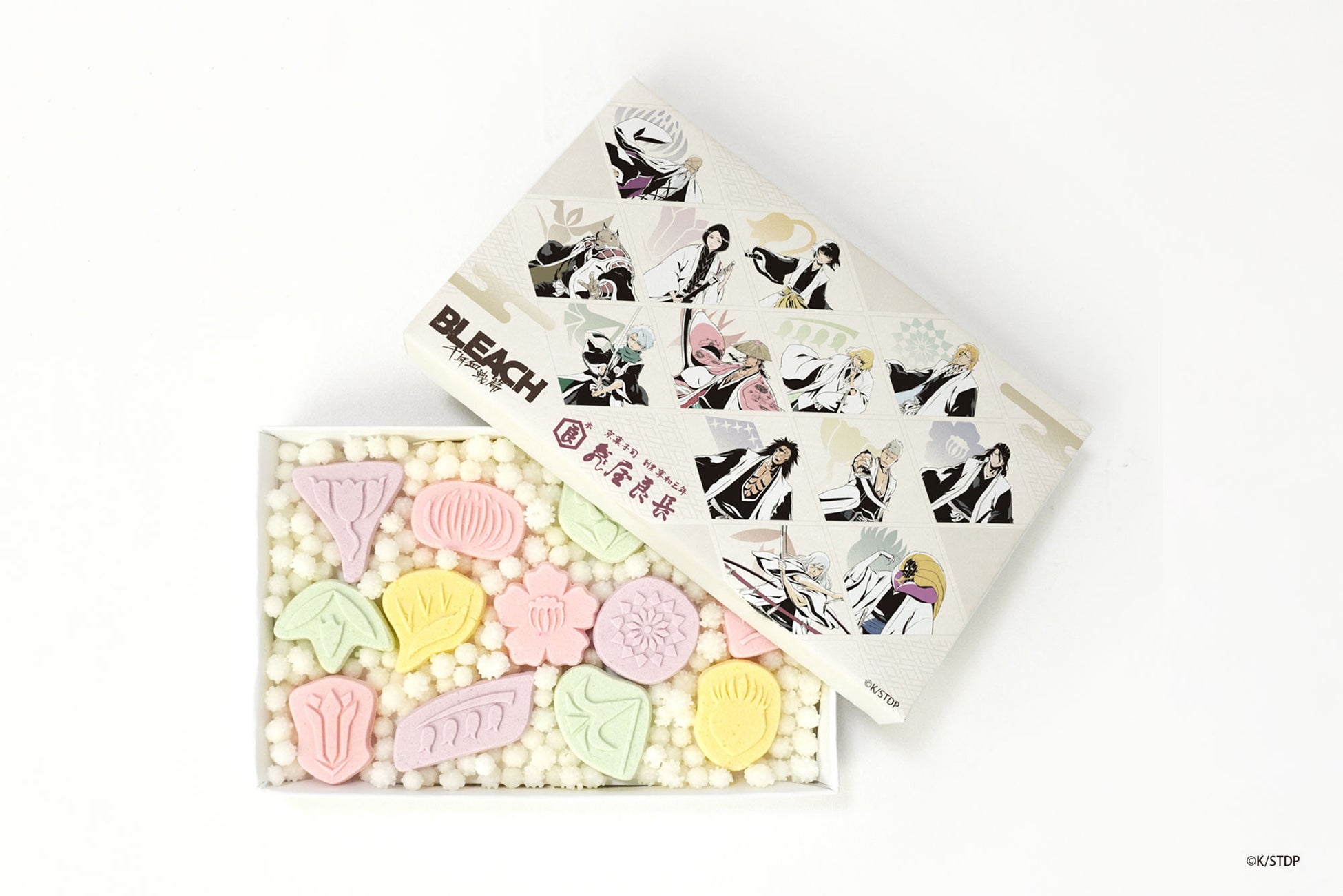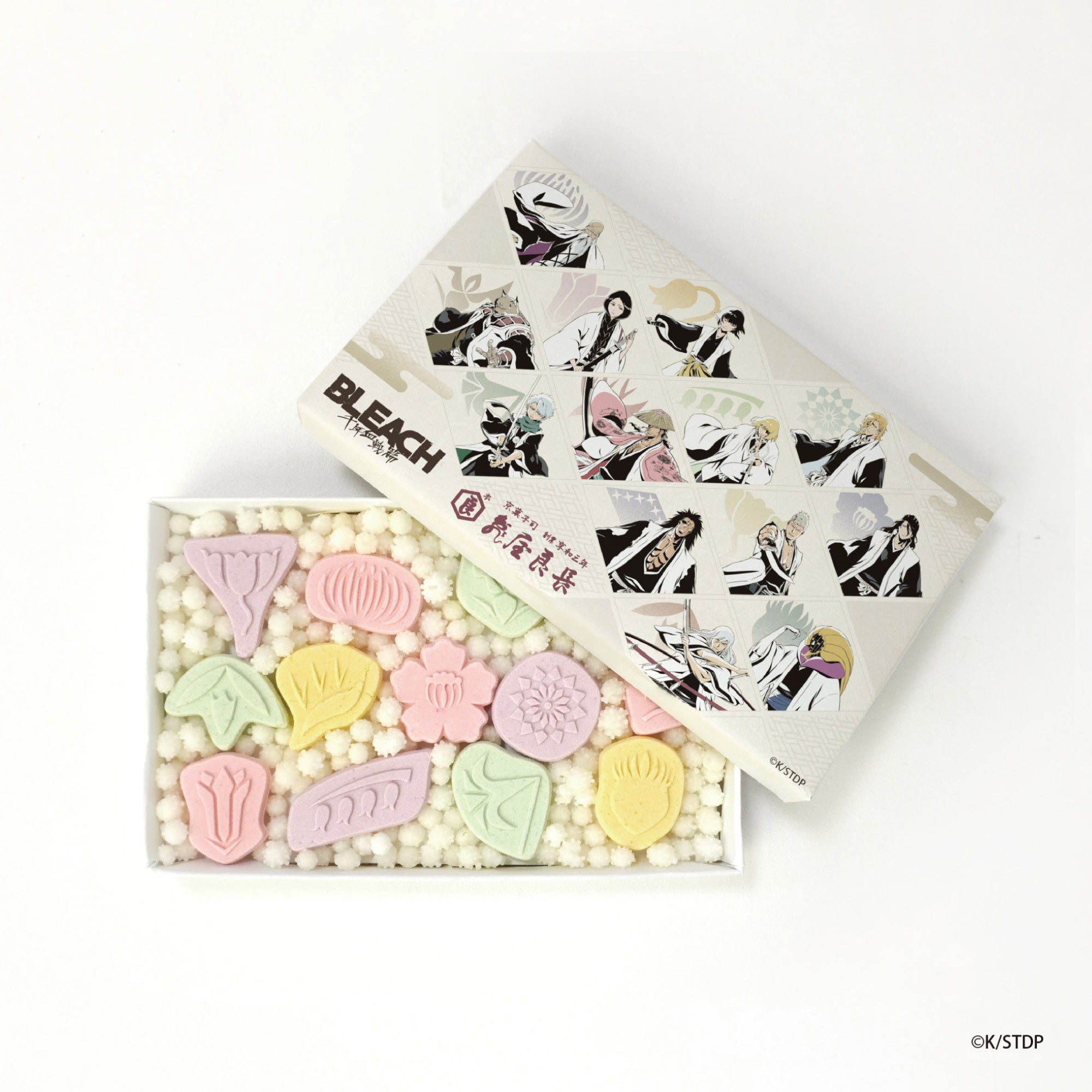 護廷十三隊がそれぞれの隊で持つ13の隊花です。型を特注で製作し、一つ一つの隊花を忠実に表現いたしました。淡いパステルカラーで彩られた13個は繊細な口どけで、見た目も味わいもお楽しみいただけます。