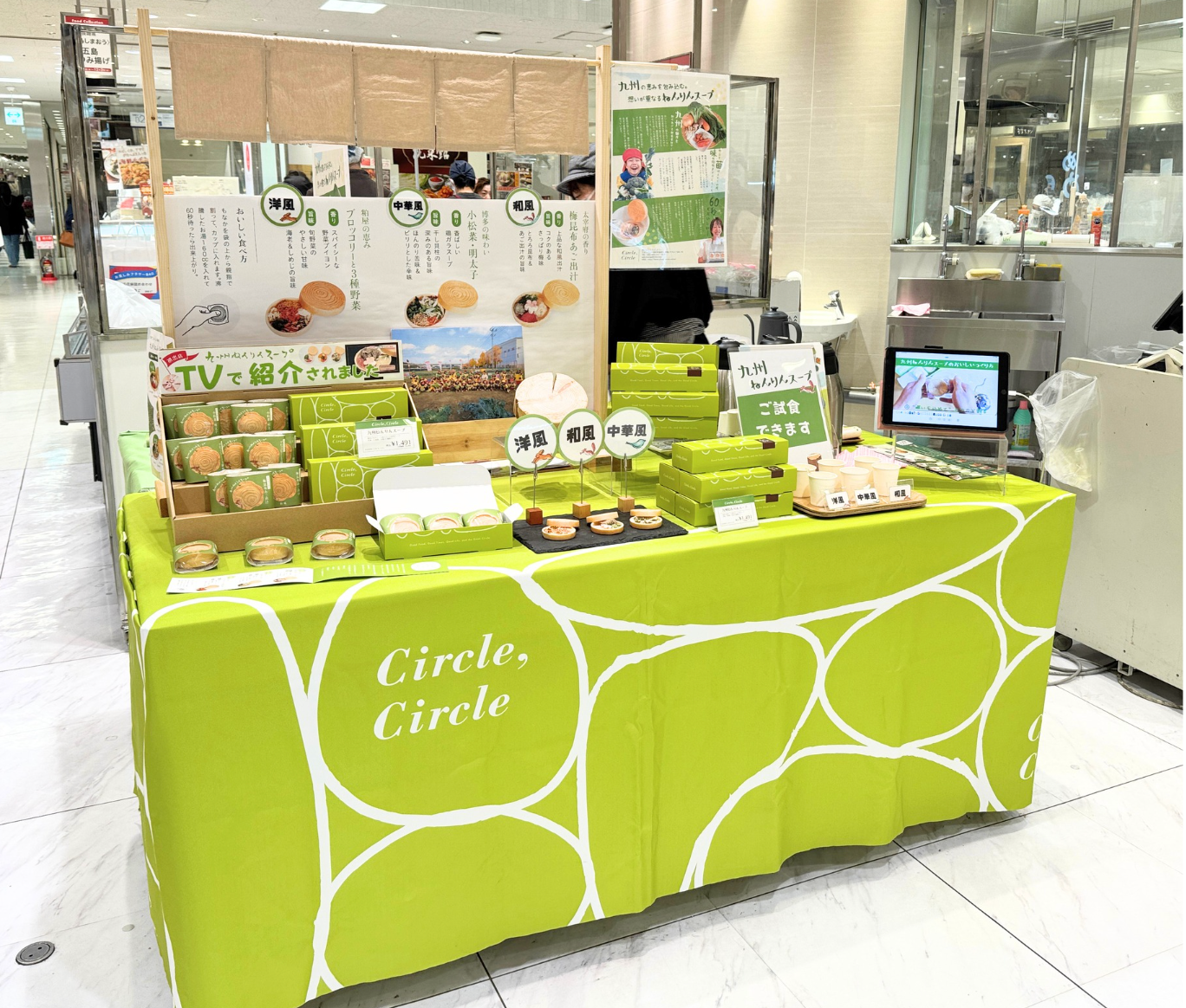 circle,circleブランドのねんりんスープをはじめ、キッシュやコーヒーも販売予定!