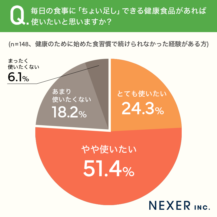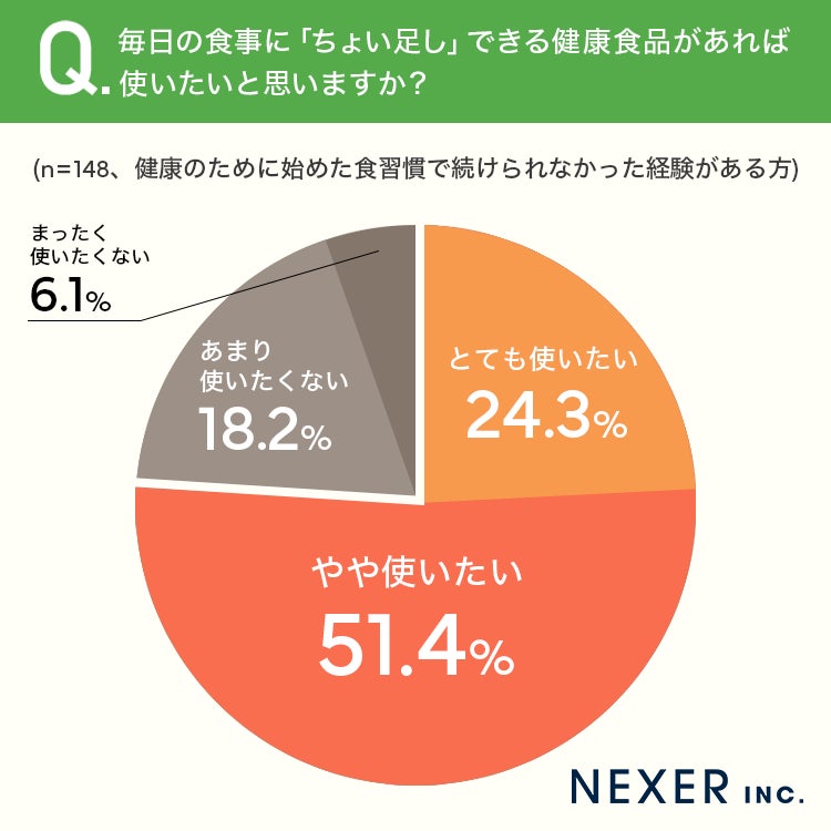 続いて、続けられなかった経験がある方に「毎日の食事に『ちょい足し』できる健康食品があれば使いたいと思うか」を聞いてみました。