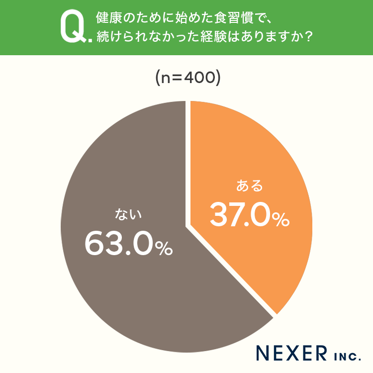 ■37.0%が、健康のために始めた食習慣で「続けられなかった経験がある」と回答