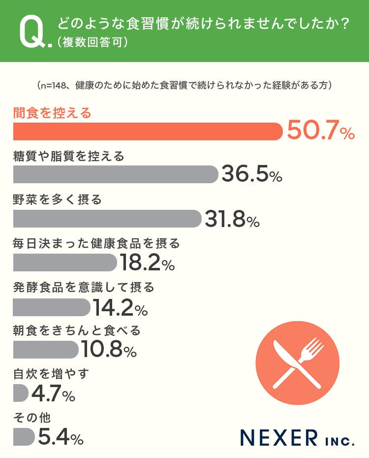 ■続けられなかった食習慣、最多は「間食を控える」で50.7%