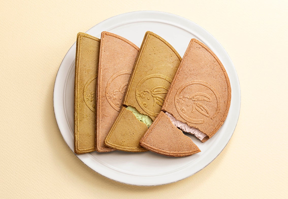 愛らしい月うさぎ印でおなじみ、鎌倉名物『鎌倉半月』を満喫できる夏限定セットです。ほのかに甘くさくっと香ばしいおせんべいに、ふわっと軽いクリームをたっぷりサンド。定番人気の「小倉風味」「抹茶風味」、落花生が香ばしい夏限定「ぴーナッツ半月」を一緒に楽しめます。