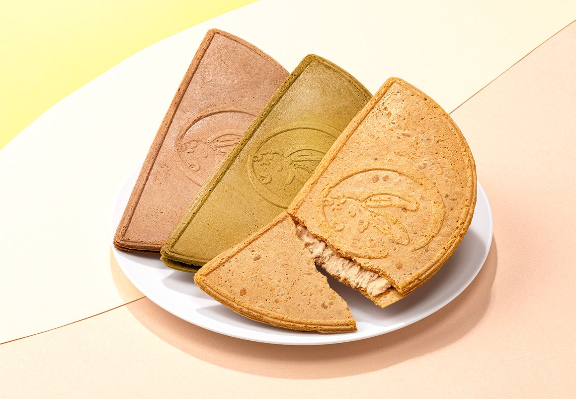 サンドだょ』。ゴーフレットは、アーモンドを焼きこんだ香ばしいキャラメルナッツ味。クランチショ