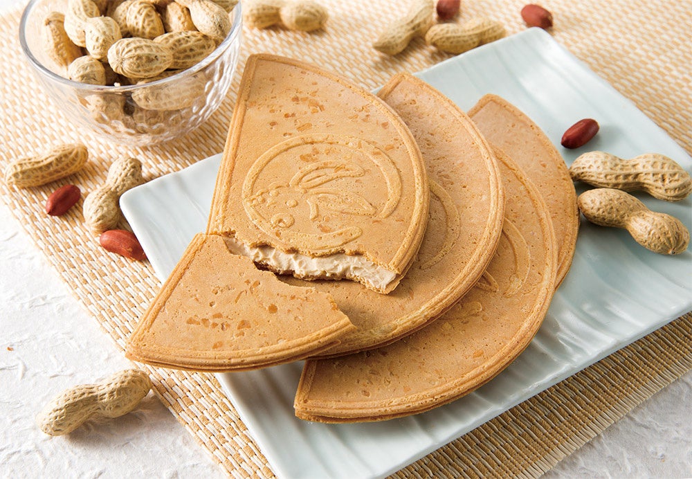 毎年楽しみにしている方も多い『鎌倉ぴーナッツ半月』。ザクッとした厚焼きのゴーフレットとコクのあるピーナッツクリーム。そのどちらにも使用した“ローストピーナッツ”が、極上の香ばしさの決め手です。外から中までピーナッツどっさり。ぽりぽりシャキシャキお⼝で鳴らす、夏のおともの半⽉です。