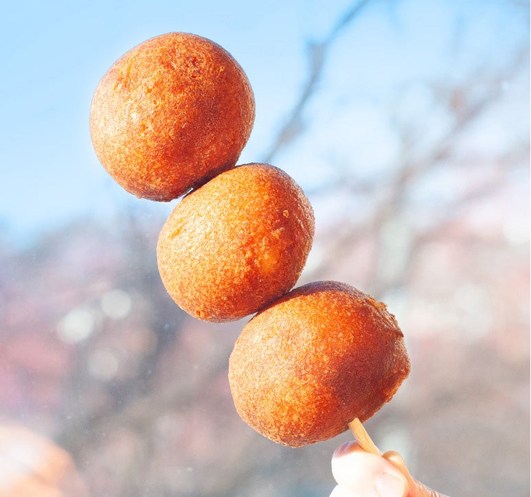 ・じゃがいもを丸ごと揚げた北海道名物「峠のあげいも」(1本 税込480円)
