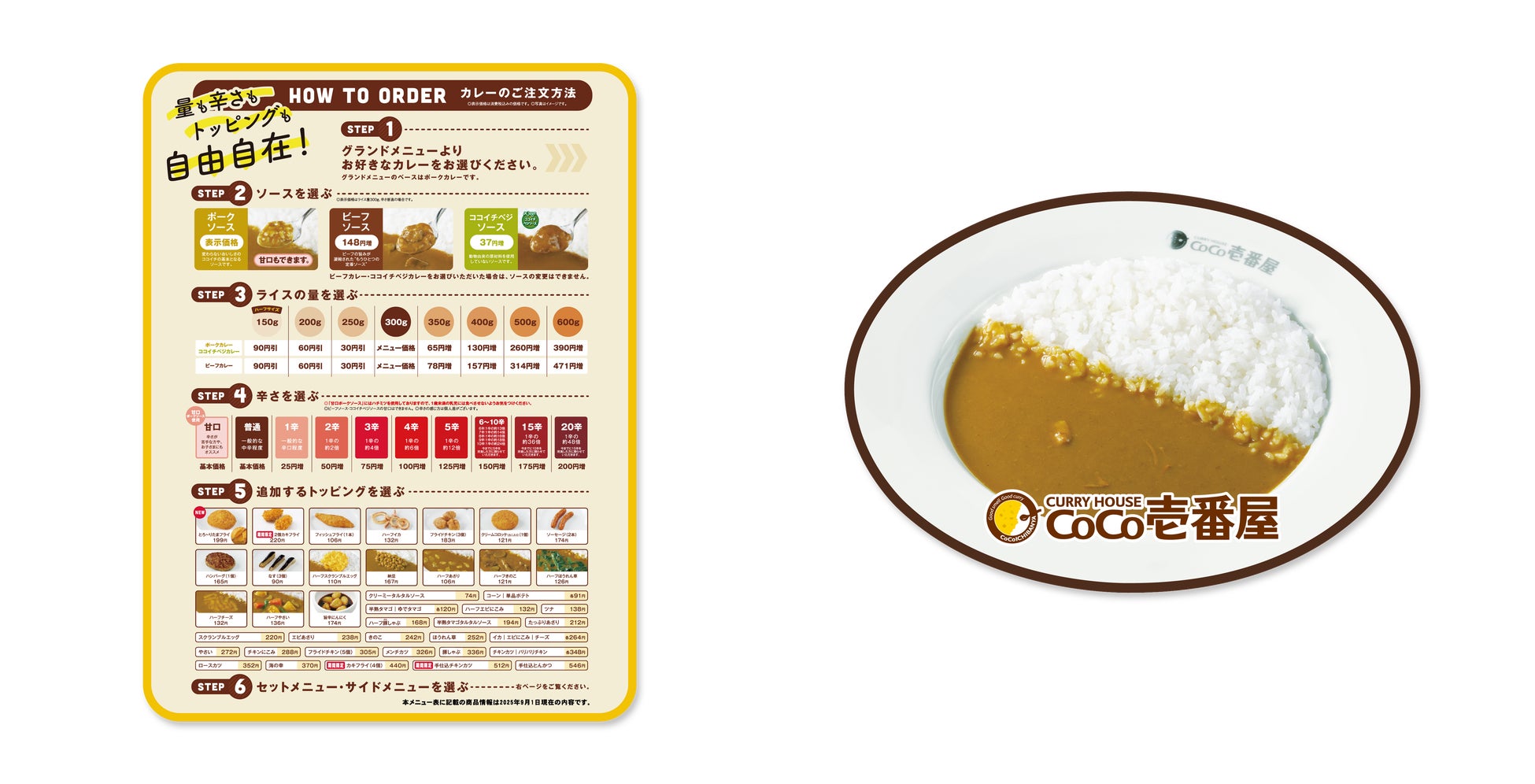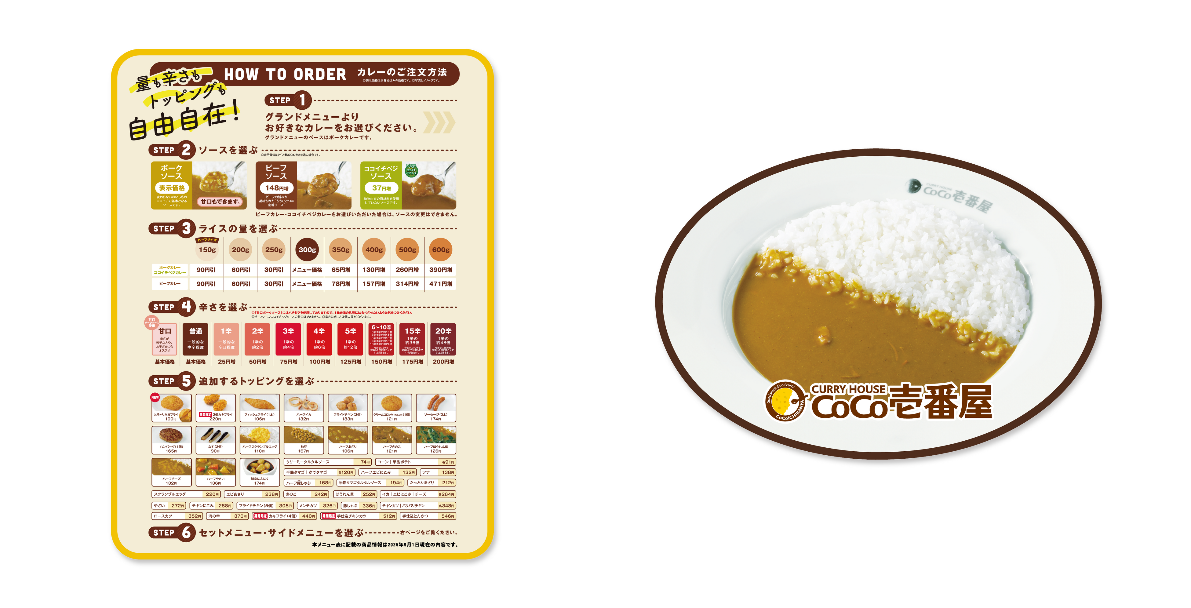 お馴染みのロゴ看板をモチーフにした「シリコンルームライト(S賞)」や、メニュー表・ポークカレーのビジュアルを再現した「ブランケット(A賞)」など、ファン必見の豪華ラインナップが登場! さらに、普段使いにもぴったりな「Tシャツ(B賞)」や、ユニークな「メラミンプレート(C賞)」など、実用性の高いアイテムもご用意しております。「トッピングワッペンシール(D賞)」は、シールとして好きなものをトッピングできるだけでなく、ワッペンとして衣類に貼り付けも可能! ブランケットに貼り付けて、自分だけのトッピングカレーも作れるかも⁉