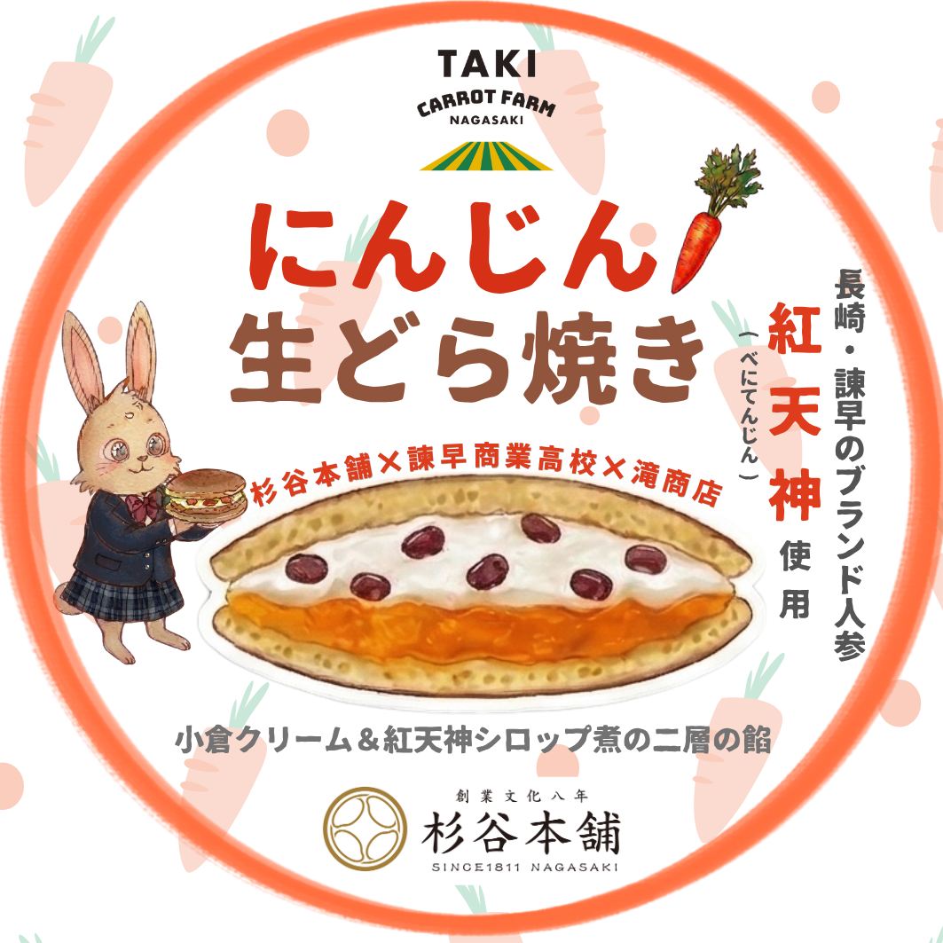紅天神のにんじん生どら焼き ©2026 杉谷本舗 × 諫早商業高校 × たきキャロットファーム