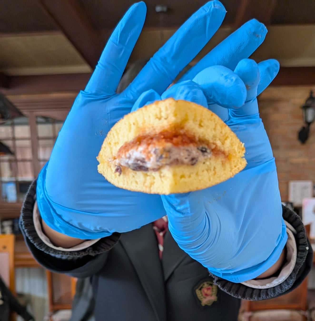● 杉谷本舗のカステラ職人が焼き上げた皮は、カステラのようにしっとりとしながらもふわふわ。その皮が具材と見事な一体感を生み出している