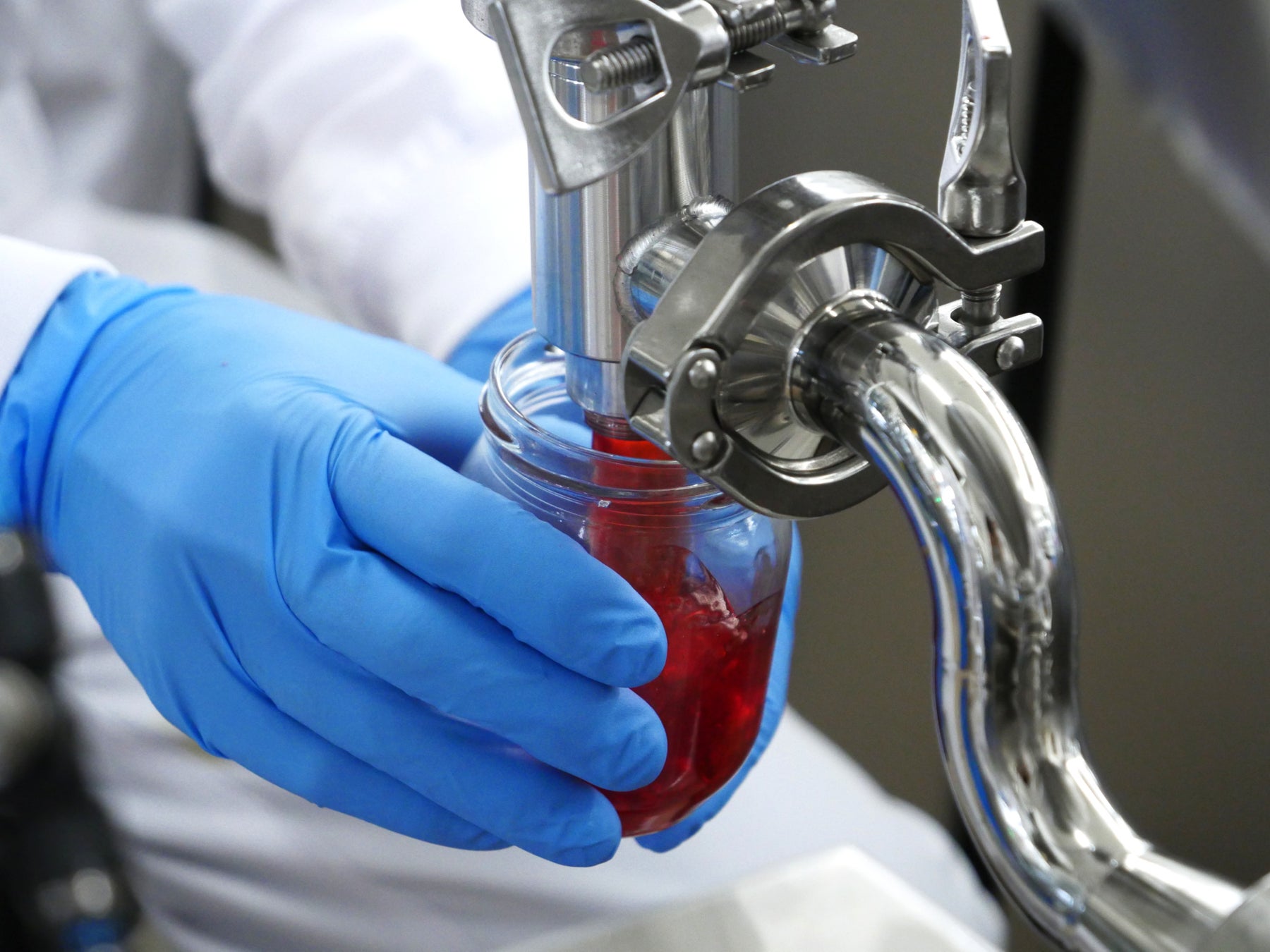 製造現場は、いちごをカットしていた時の爽やかな香りから、煮込みが進むにつれて濃密で甘い香りへと変化。果肉のごろっと感を残しつつ、鮮やかな紅色を引き出すため、煮込み工程では最適な状態を見極め、時間調整にこだわりました。