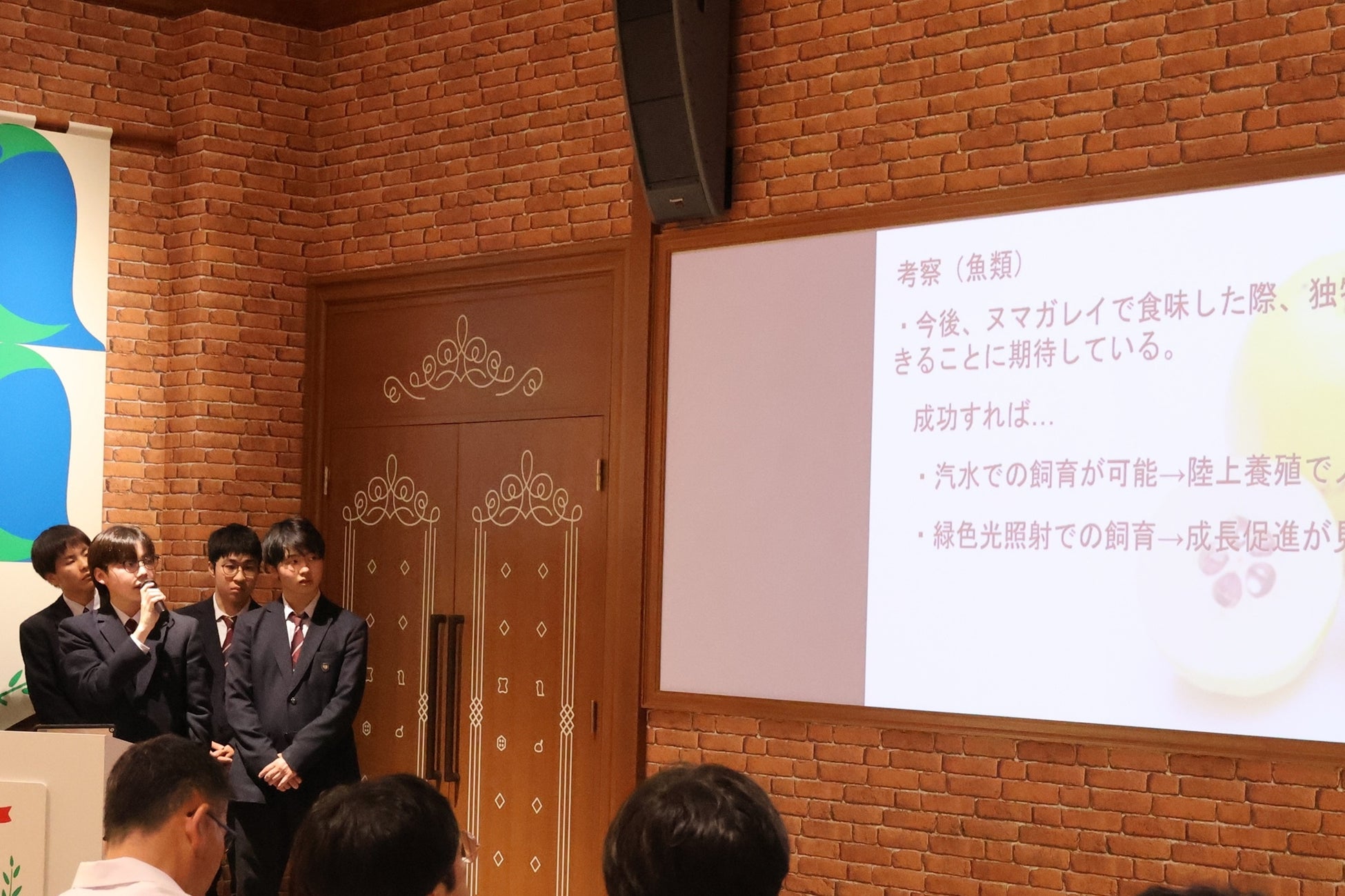 発表会では、ロッテの研究員が半年間伴走した中高生3チームが、独自の視点で「カリン」の可能性を発表しました。研究内容は多岐にわたり、地元山形の名産果物の酸化を防ぐ「還元剤」としての力を検証した発表や養殖魚の餌に活用して食味向上に挑んだ事例、タマネギの成分と組み合わせて環境に優しい「日焼け止め」を試作した研究など、斬新な成果が次々と披露されました。